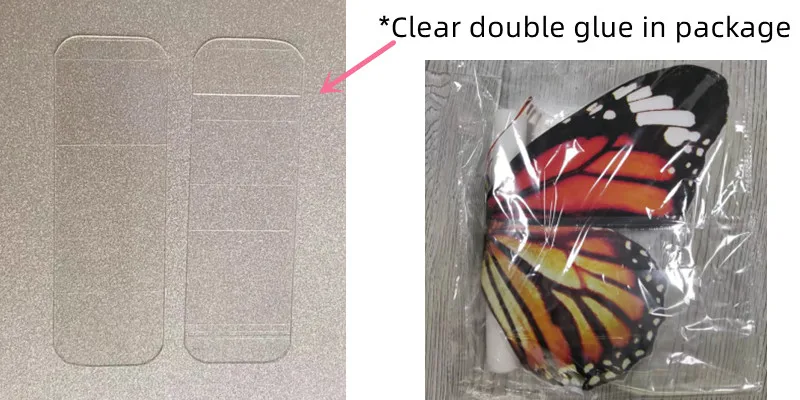 חבילה כלולה 1 חתיכות פרפר ו -2 יח 'דבק צדדים כפולים ברורים. פרפר לא דבק מלא על הגב