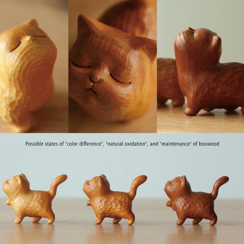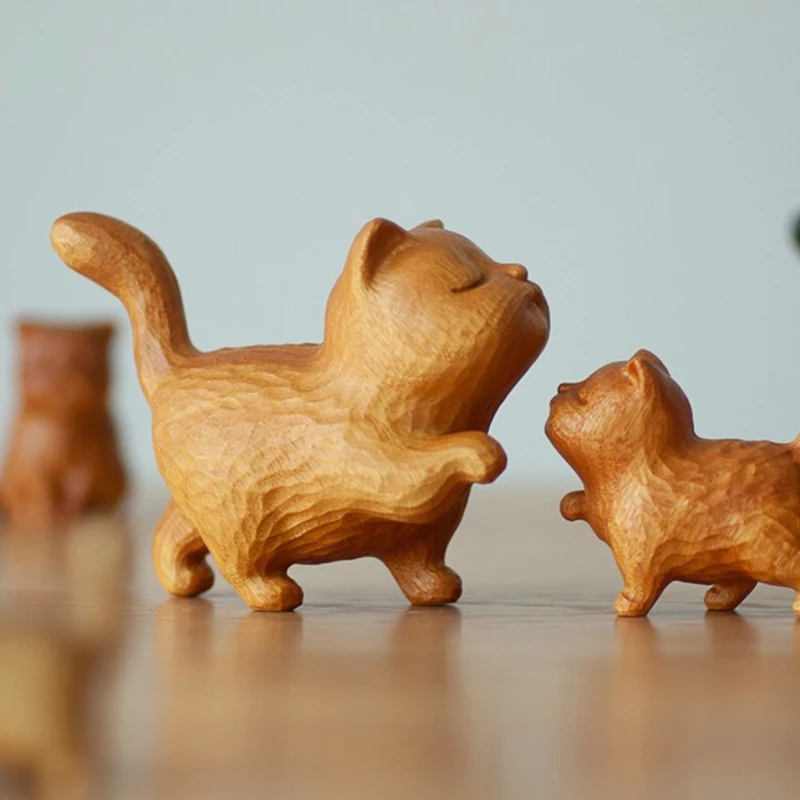 1pc Creative Cute Kitten Wood Carving Decoration Ornament