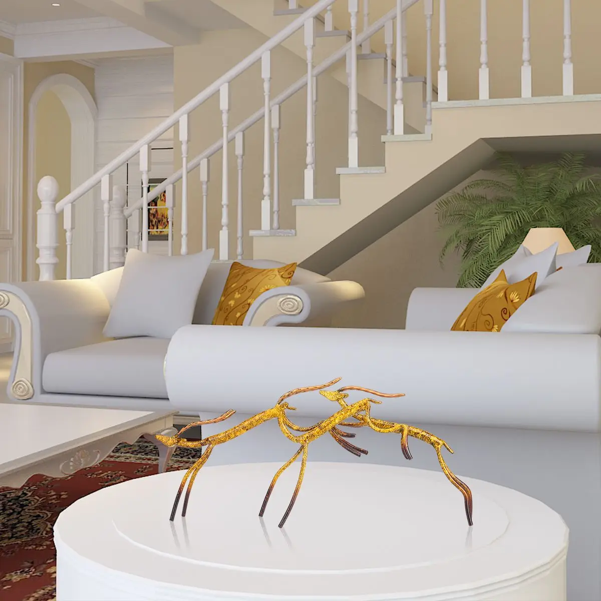 This is a dynamic and elegant antelope ornament, two antelopes are running, jumping, chasing each other. The modeling is very dynamic. Special skin texture paint and exquisite painting process make the color vivid and beautiful. Suitable for living room, bar, study, dining room and other interior space decoration.