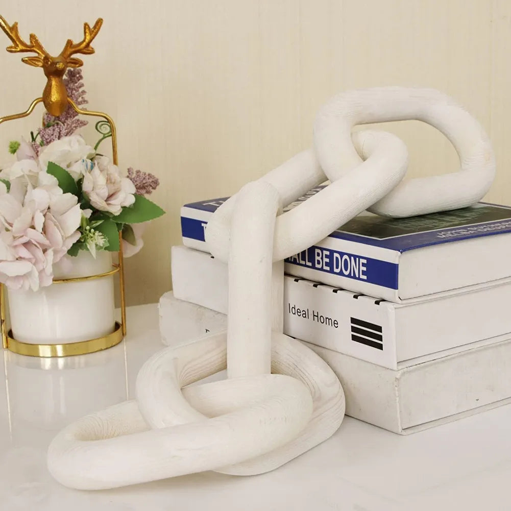 Wooden Chain Link Boho Style Hand Carved 5-Link Chain Art Craft Ornament for Table Tray Farmhouse Office Rustic Decoration