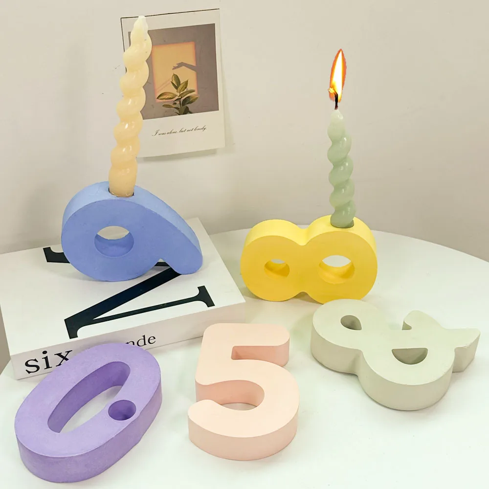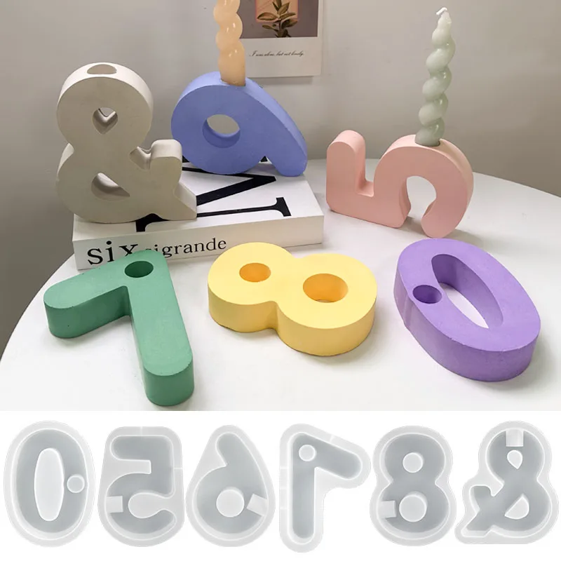 DIY 1-8 Geometric Digital Candlestick Silicone Mold Arabic Numerals Candle Holder Craft Making Plaster Resin Molds Home Decor