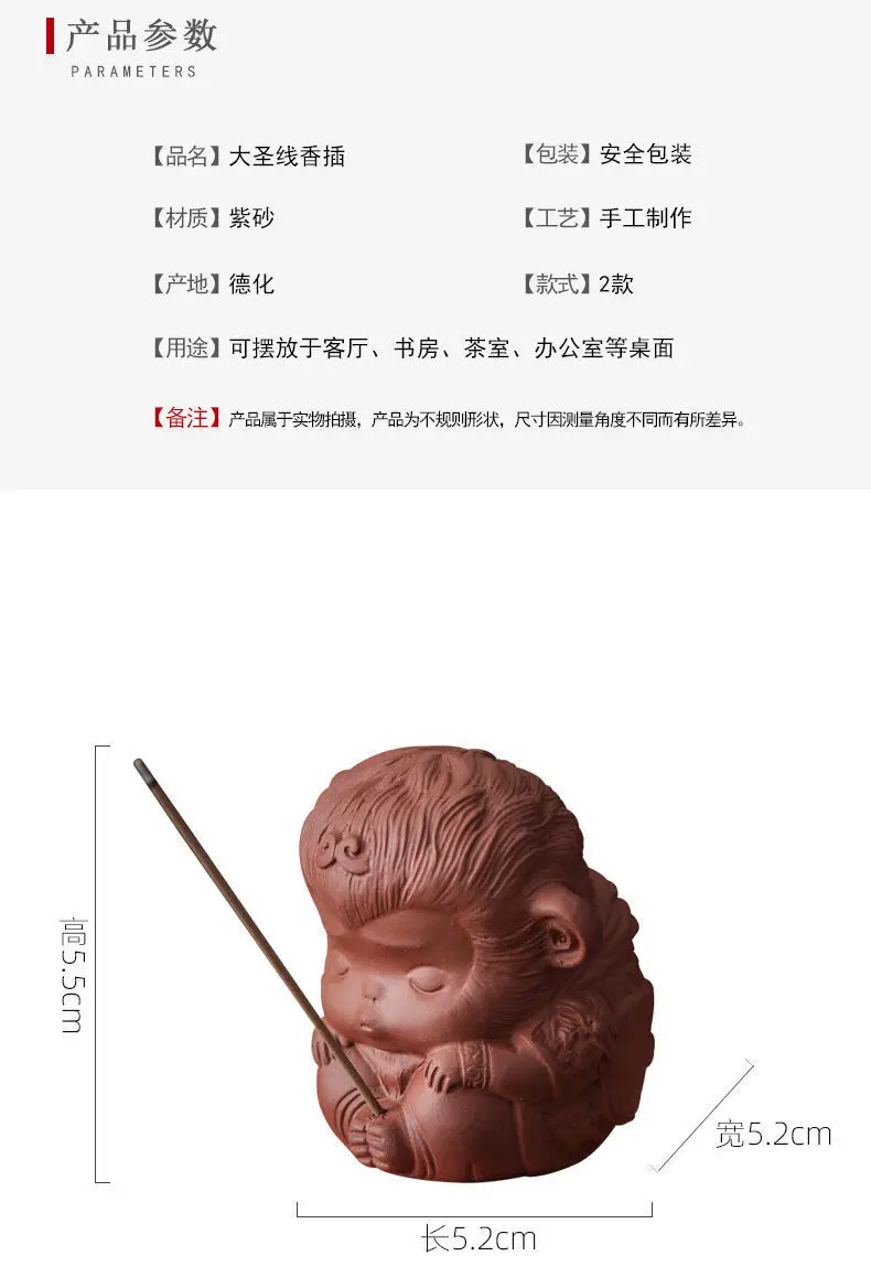 이름 : Chinoiserie 선물 세라믹 보라색 점토 도자기 원숭이 킹 선 wukong 원숭이 향 스틱 공예품