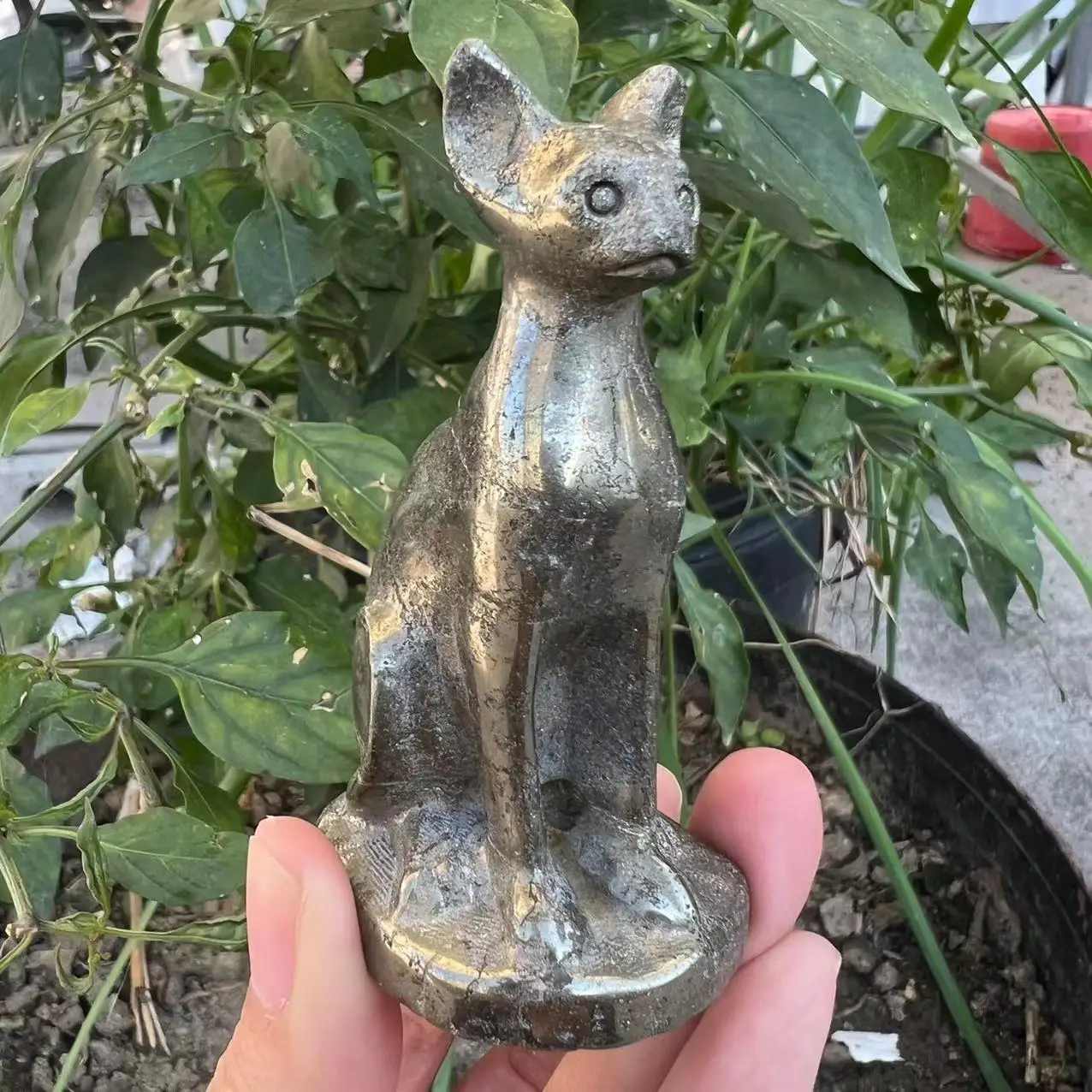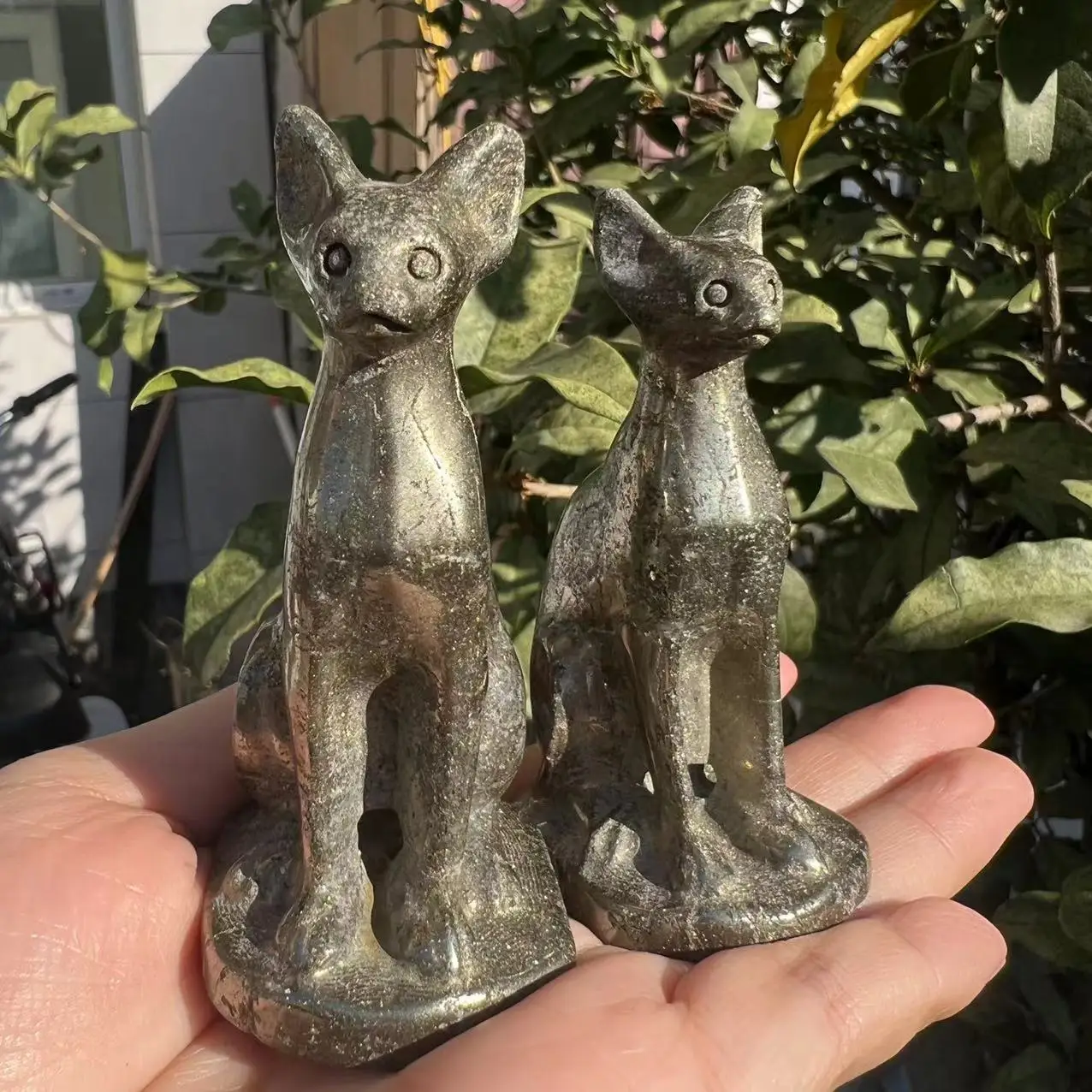 Natural Pyrite Egyptian Cat Crystal Animal Powerful Statue Healing Children Holiday Gift Home Decoration