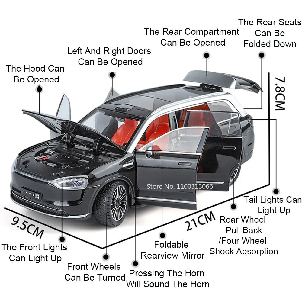 1:24 Scale SERES AITO M9 Cars Alloy Models Diecast Toy 6 Doors Opened SUV with Light Sound Vehicles Toys for Kids Festival Gifts