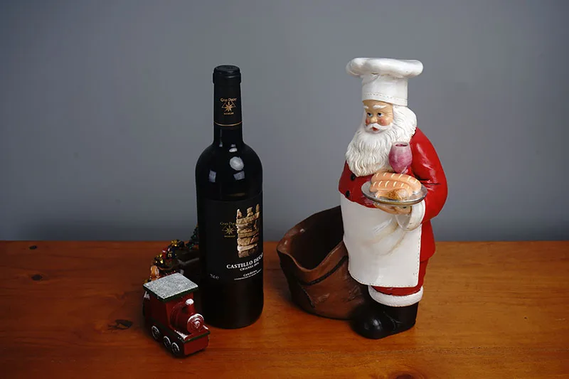 Modern Christmas Figures Table Home Decor Statues Santa Chef Wine Rack Storage Sculptures Figurines For Interior Room Ornaments