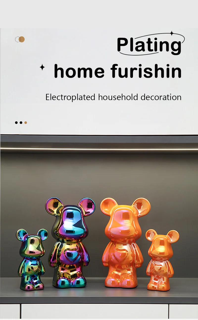 Northeuins Seramik Mewah Keganasan Bear Figurine berwarna -warni Teddy Bear Collection Collection Item Hiasan Ruang Tamu Hiasan