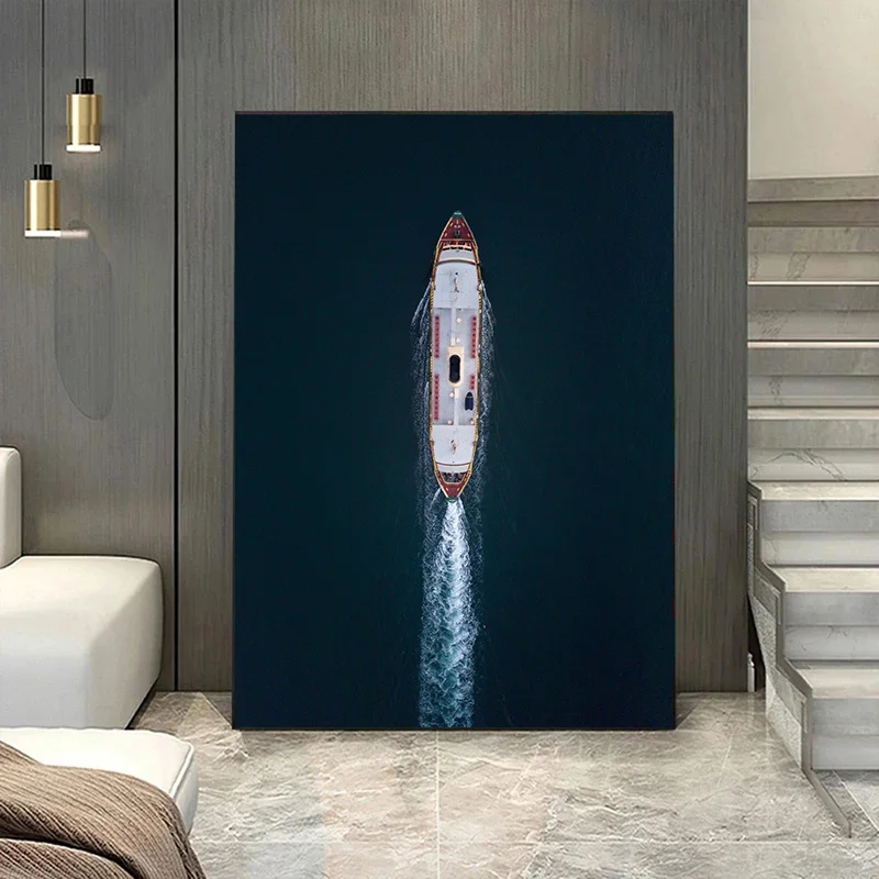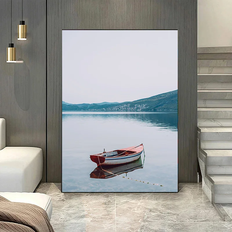 1Pcs Living Room Home Decor Canvas Painting Fishing Boat Interior Paintings Pictures Wall Decoration Nordic Style River Bedroom