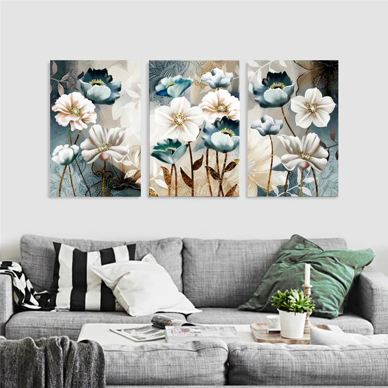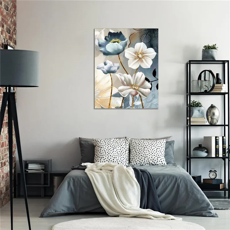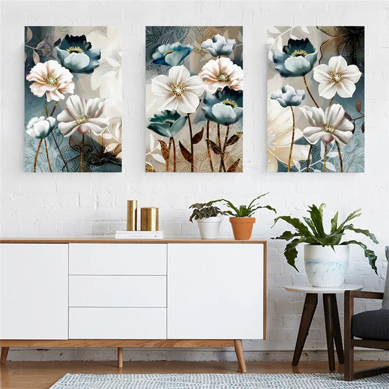 Abstract Blue Pink Flower Canvas Wall Art Poster Modern Flower Wall Painting Picture for Bedroom Living Room Decor Aesthetic