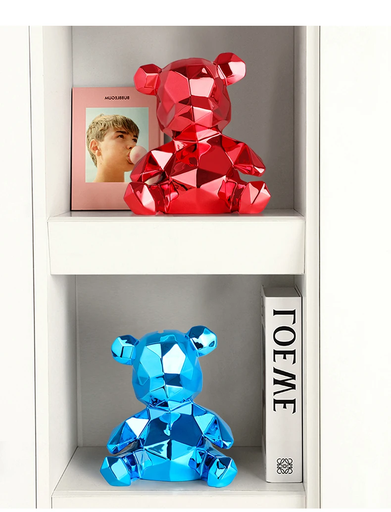 Electroplating Bear Standbeeld Geschenk voor kind Teddybeer Sculptuur Dierlijk ornament Woonkamer Home Decoratie Dog Figurine