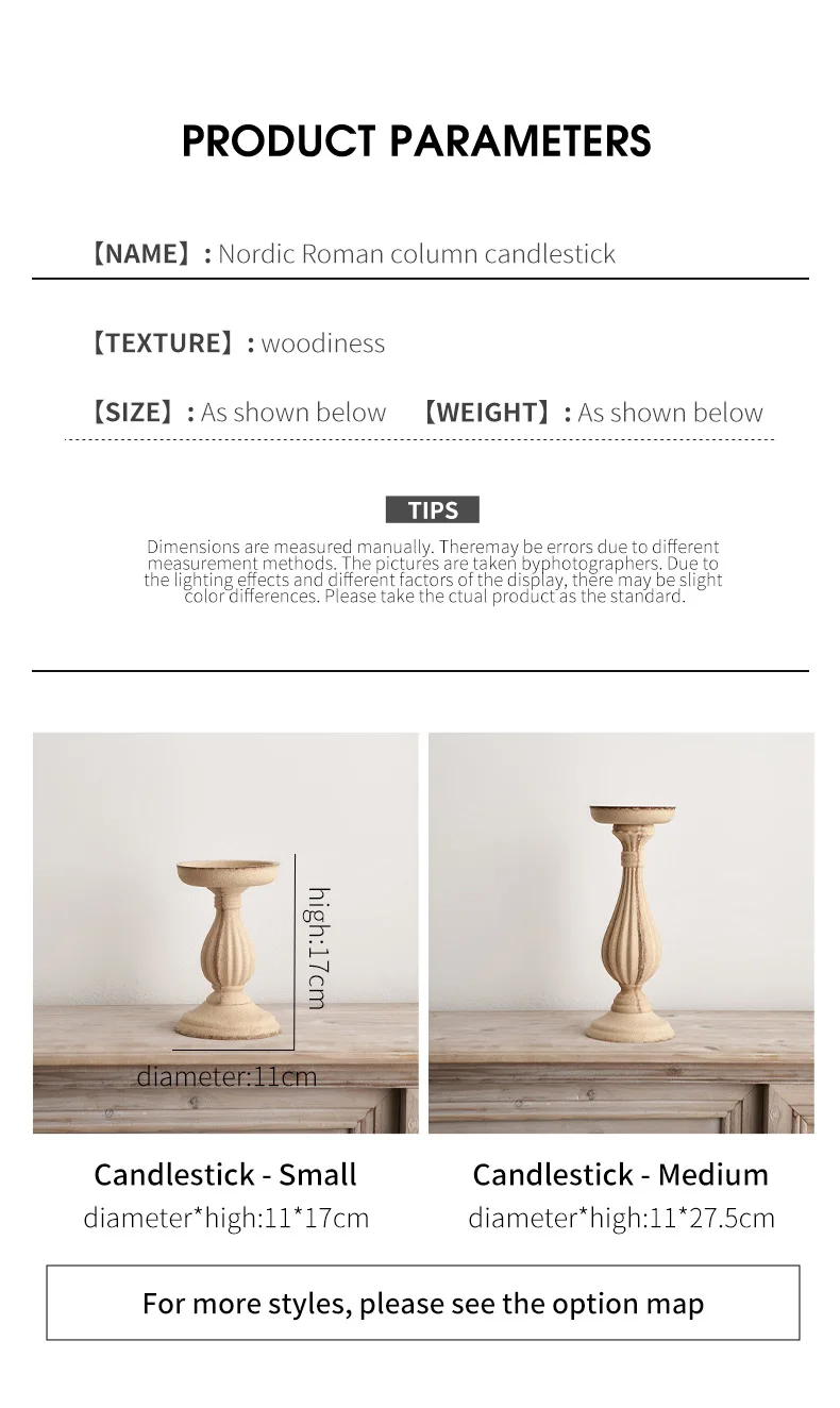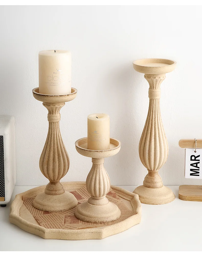 Houten ambachten retro home decoratie Romeinse kolom kandelaar eettafel ornamenten creatieve kandelaars voor woonkamer decor