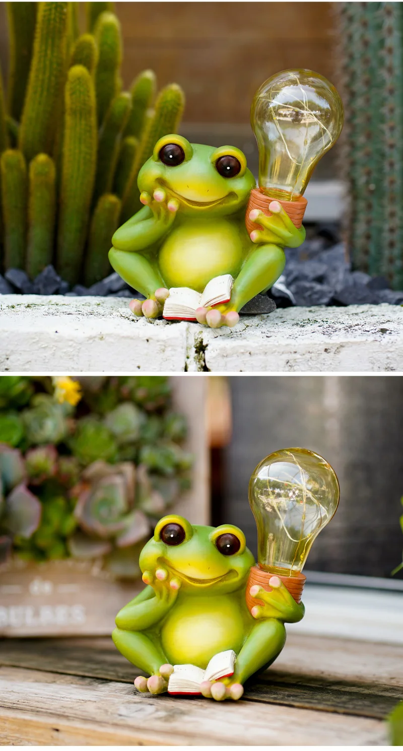 NORTHEUINS Solar Frog Reading Book Light Bulb Figurines Creative Animal Home Living Room Study Desktop Decorative Accessories