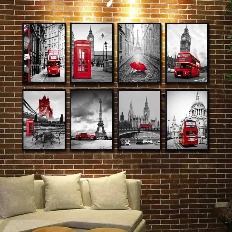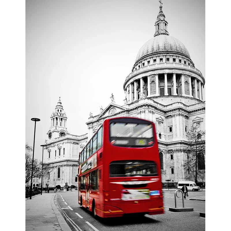 Roman Architecture Street Red Bus London Black and White Poster Painted Canvas Living Room Bedroom Decoration for Art Lovers