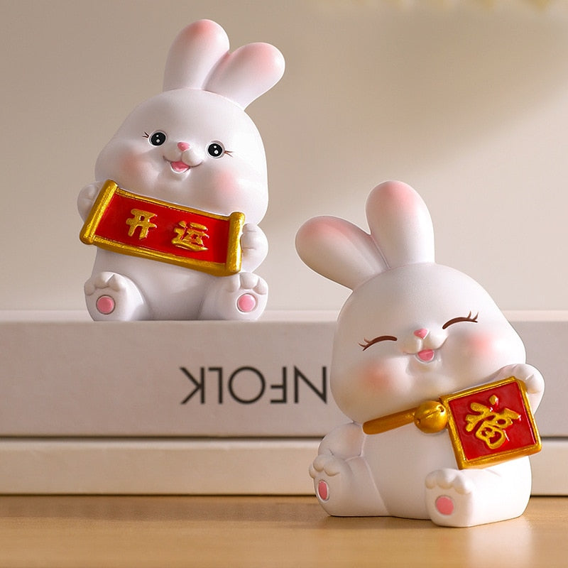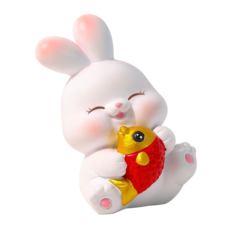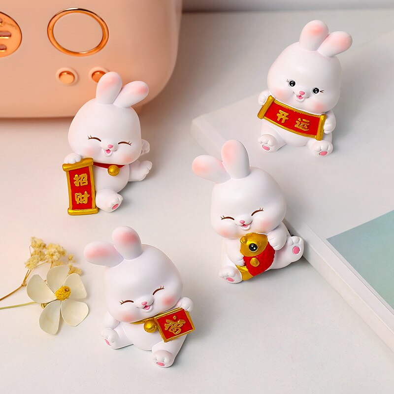 2023 Rabbit Ornament Chinese New Year Kawaii Desktop Ornament Creative Resin Cake Decoration Children's Rabbit Zodiac Gift gi