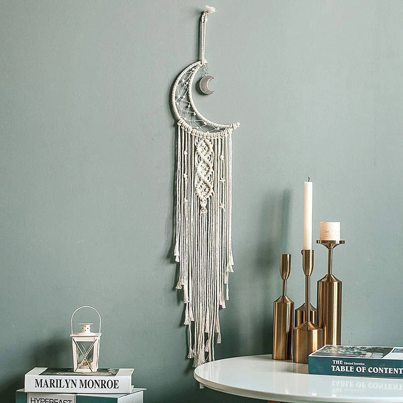 Boho Moon Star Dream Catcher White Store Dreamcatchers for Wedding Decoration Home Decor Girls Kids Nursery Room Decoration Gift