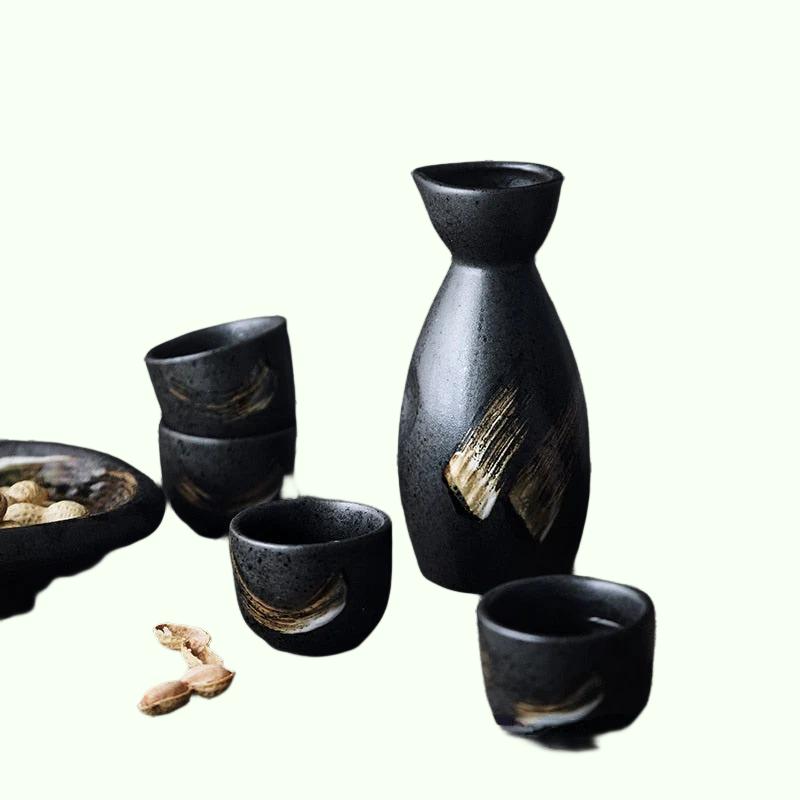 Japansk stil vinsett, keramisk sake -sett, vin dispenser, hvitvin, risvinkopp, lite vinglass, hjemmetrikkesett