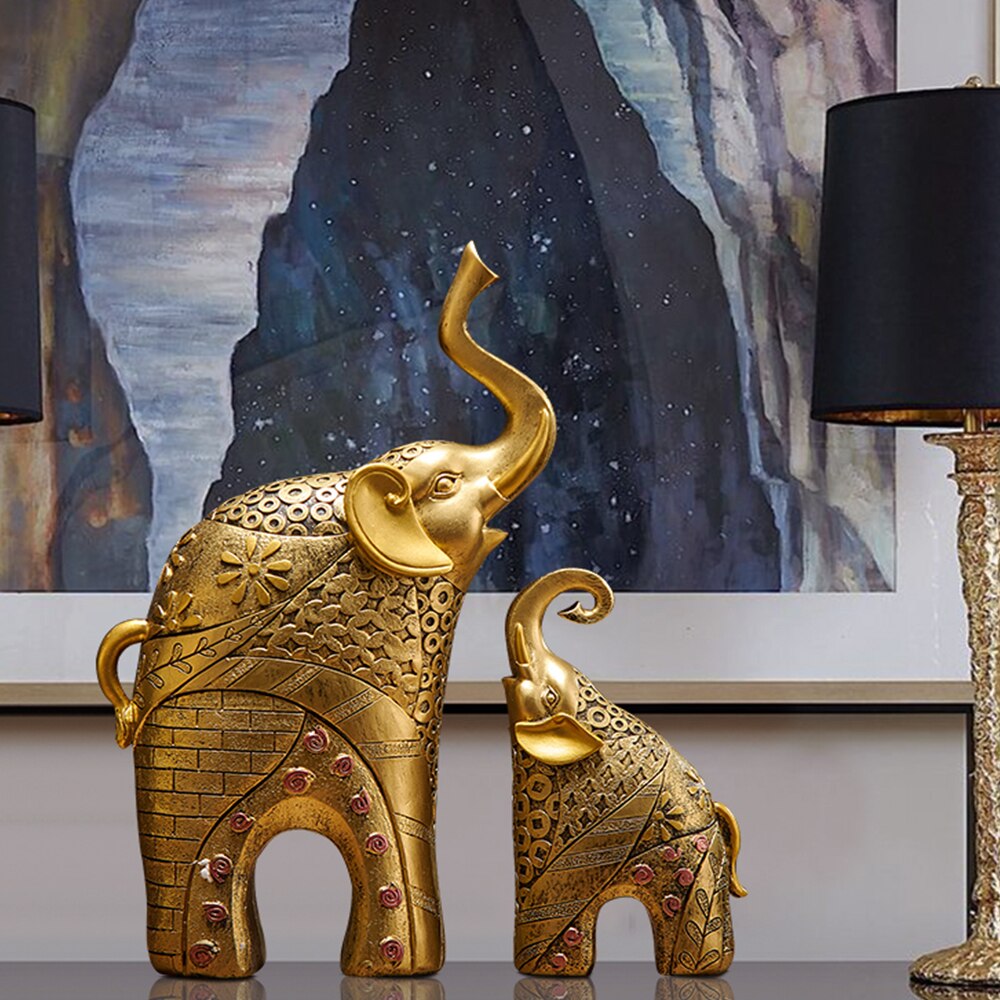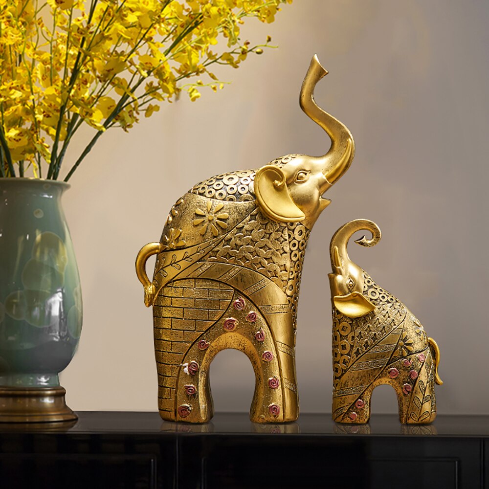 Moderne gull elefantharpiks hjem dekorasjon tilbehør håndverk dekorativ skulpturstatue ornamenter kontor stue gaver