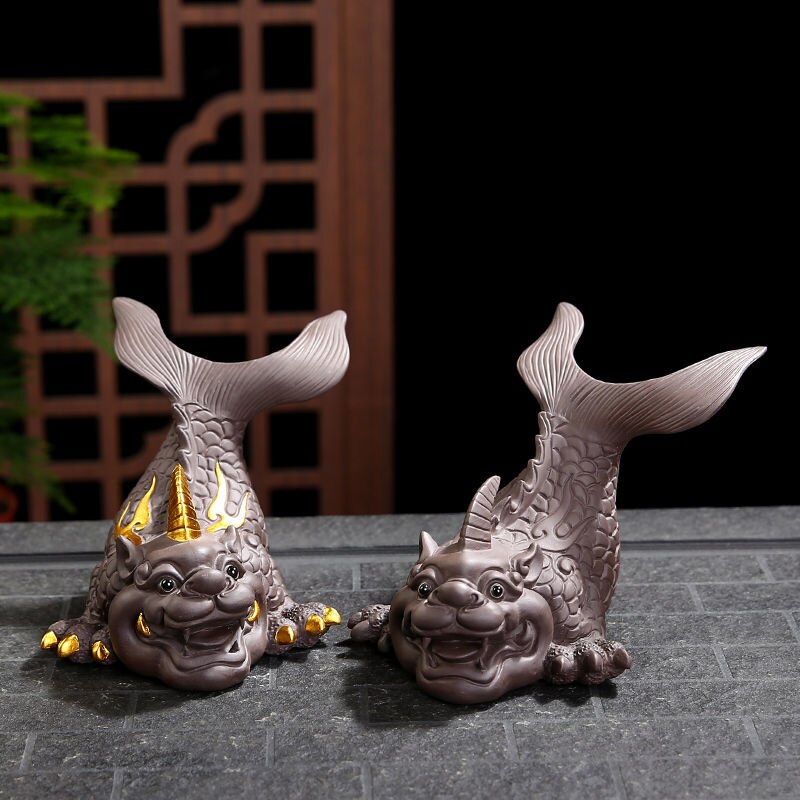 Purple Clay Lucky Fish Mascot Tea Pet Accessories Handicraft Home Decoration Business Gave Hjemmemøbler Artikler