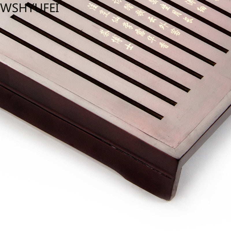 Funksjoner: Tebrettet er laget av massivt tre med høy hardhet, glatt utseende, tydelig tekstur og ingen korrosjon. Den har dobbel funksjon av å tømme vannlagring og er mer praktisk å bruke. Rent håndlaget, det generelle utførelsen er bra, te-brettpanelene er ordnet i orden, og fremhever ferdighetene. Vakker i utseende, roman og elegant, high-end atmosfære.
