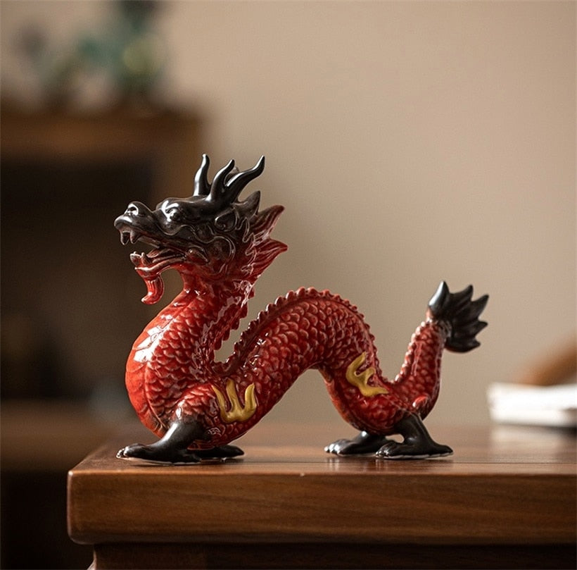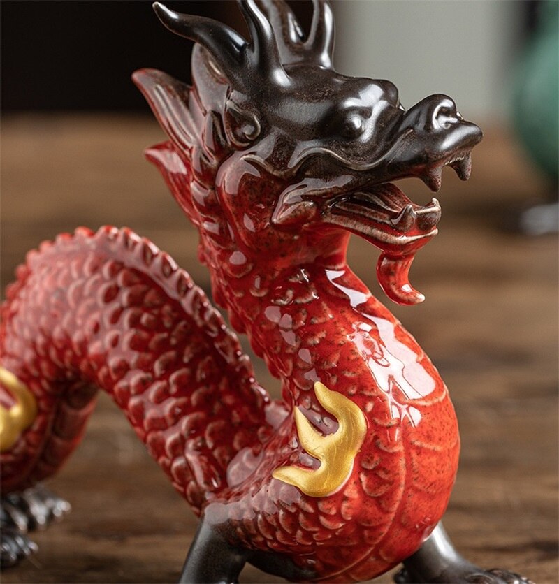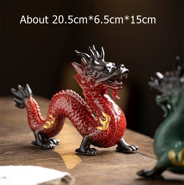 1. Beskrivelse: Tradisjonell kinesisk porselen drage statue håndlaget keramikk totem animal skulptur gammel legende totem ornament håndverksdekor til drage til stede år.