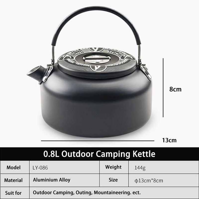 0.8L Portable Camping Kettle Outdoor Aluminum Alloy Teapot Coffee Tableware
