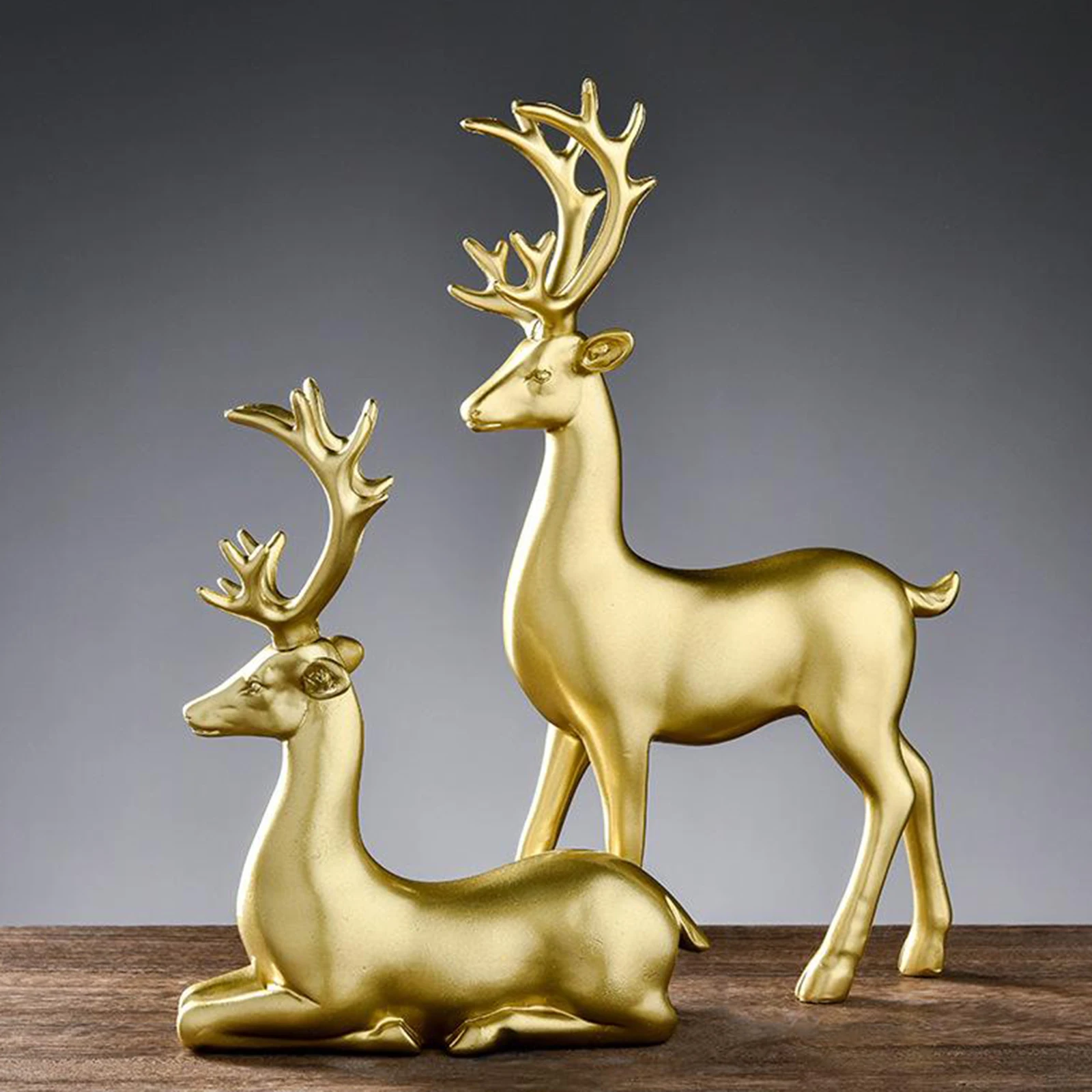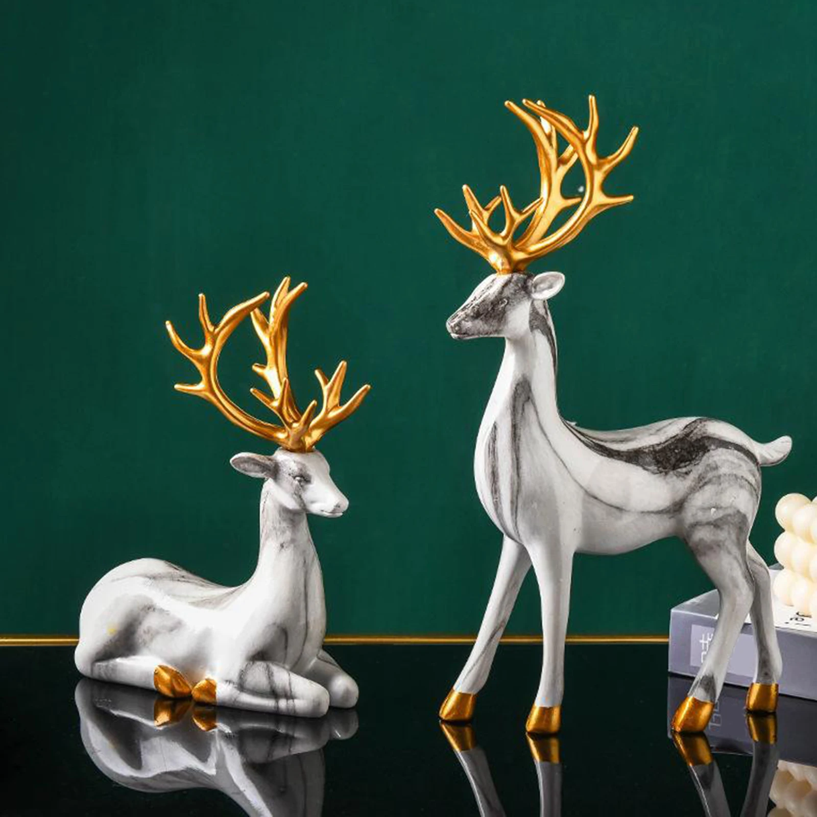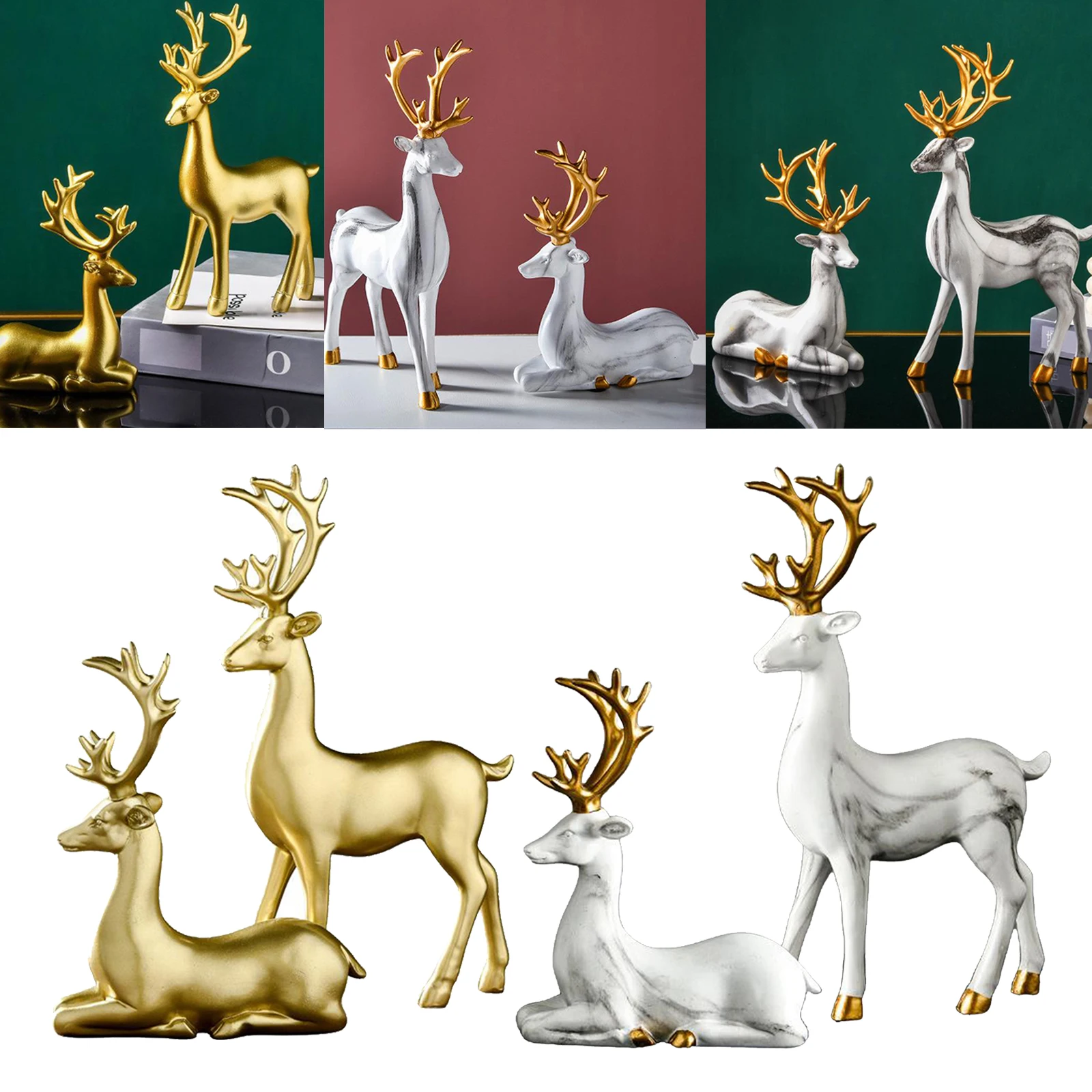 1 Pair Elk Deer Ornament Resin Crafts Figurine Statue Retro Statue Ornament Sculpture Wedding Gifts Home Decor Decorations