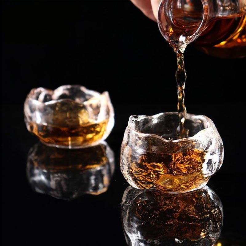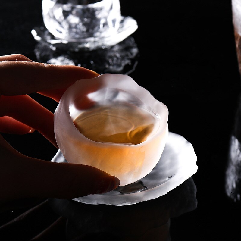 1Pcs Japanese Handmade Hammer Pattern Tea Cup Transparent Matte Kungfu Tea Cup Frozen Coaster Home Office Drinkware 45ml