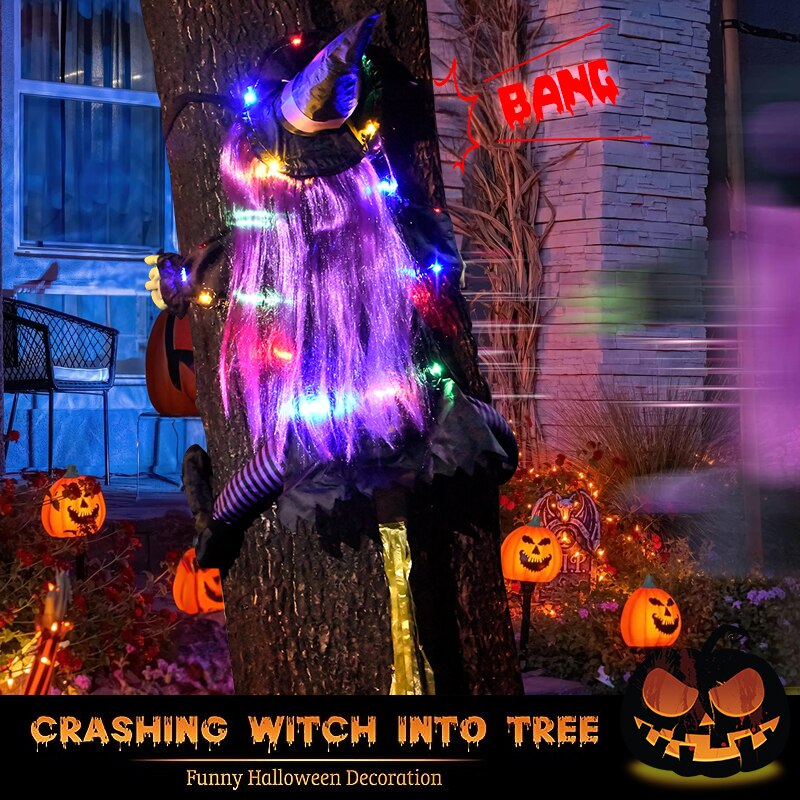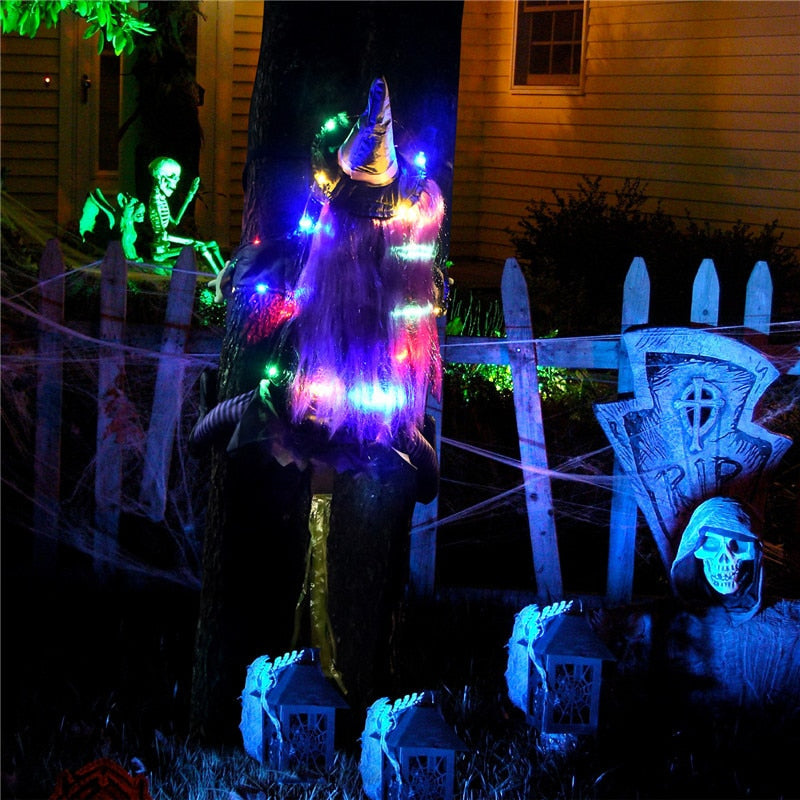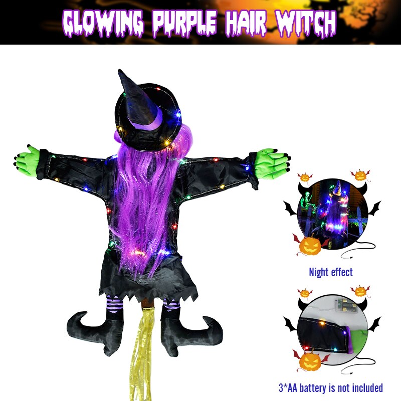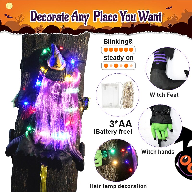 2. Witches with lights will bring you better decorative effects at night, with colored lights and dual mode flashing/constant light working