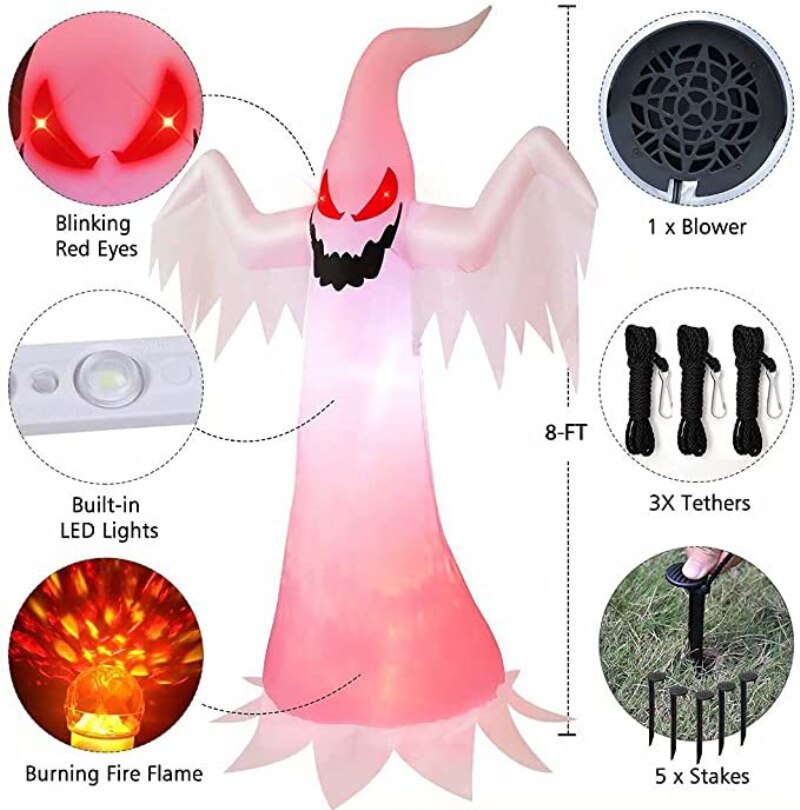 2.4m Halloween LED Inflatable White Ghost Inflatable Lantern Flame Lamp Glowing Horror Decoration Props