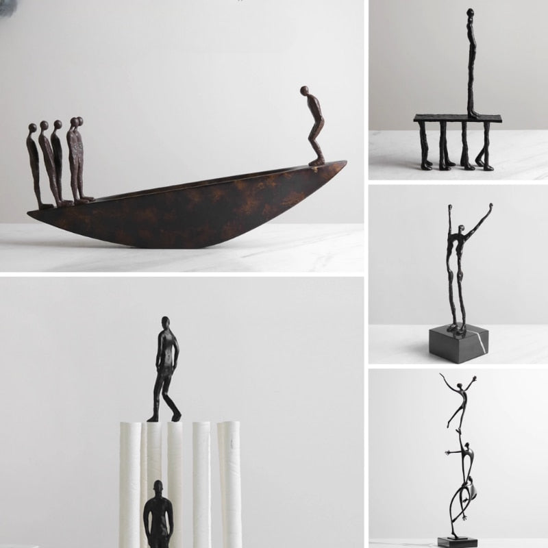 Abstract Creative Sculpture Balance Figure Art Ornaments Home Room Entrance Study Decorative Multi-Person Seesaw Statue