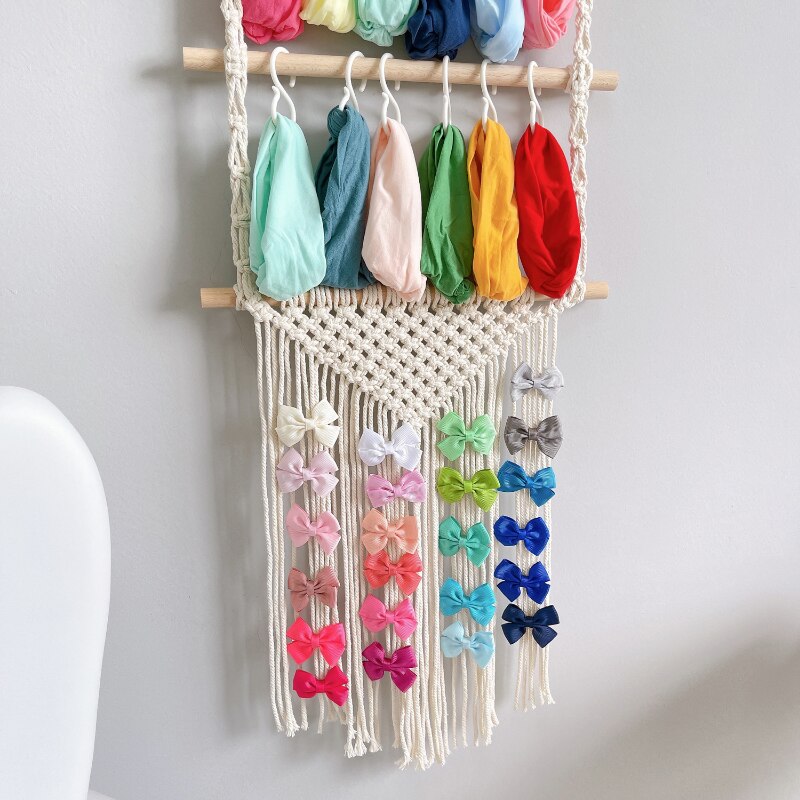 Bohemian Diy Hand-woven Hair Accessories Hairpin Storage Rack Cotton Rope Tapestry Tassel Home Wall Decoration.