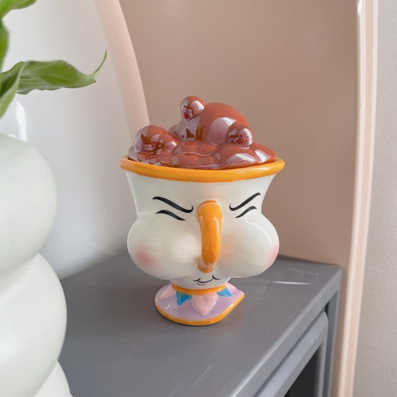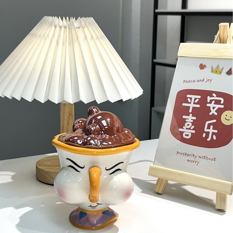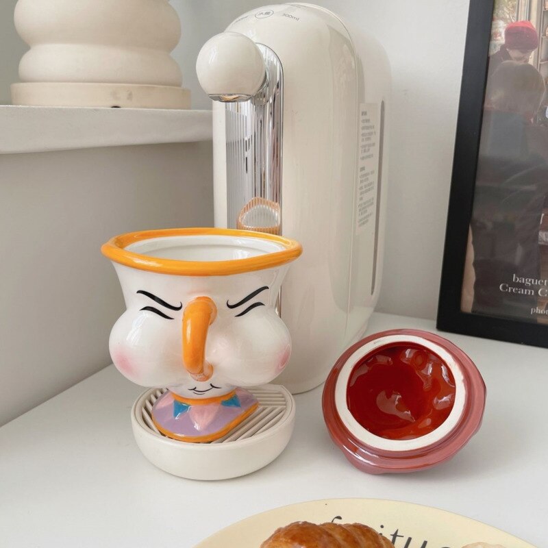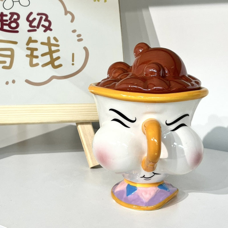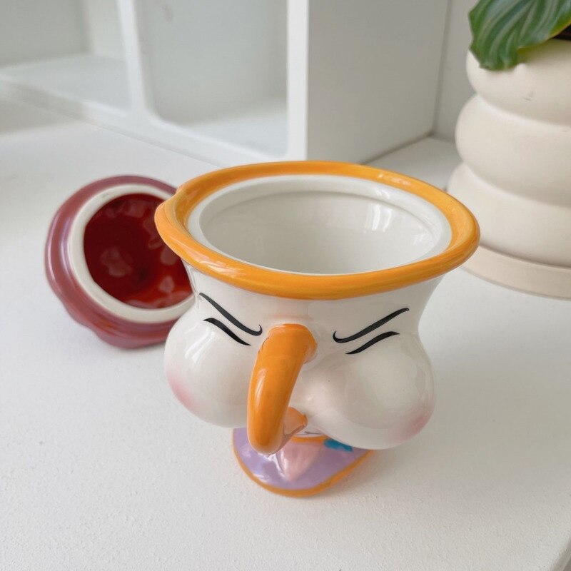 Cartoon Anime Beauty And The Beast Mug Creative 3D Chip Ceramic Cup Large Capacity Kawaii Chip Statue Coffee Mug With Lid Decor