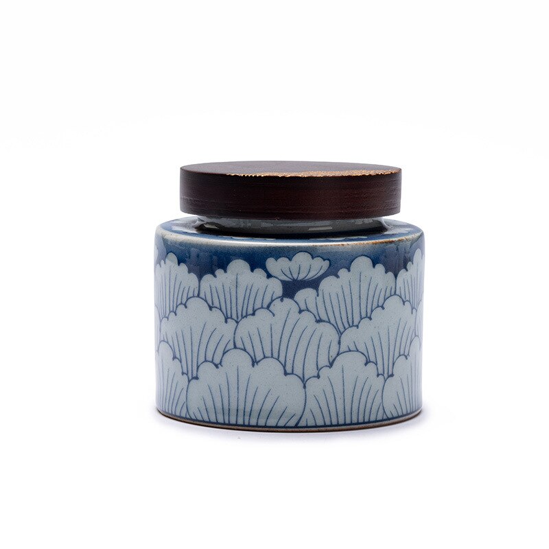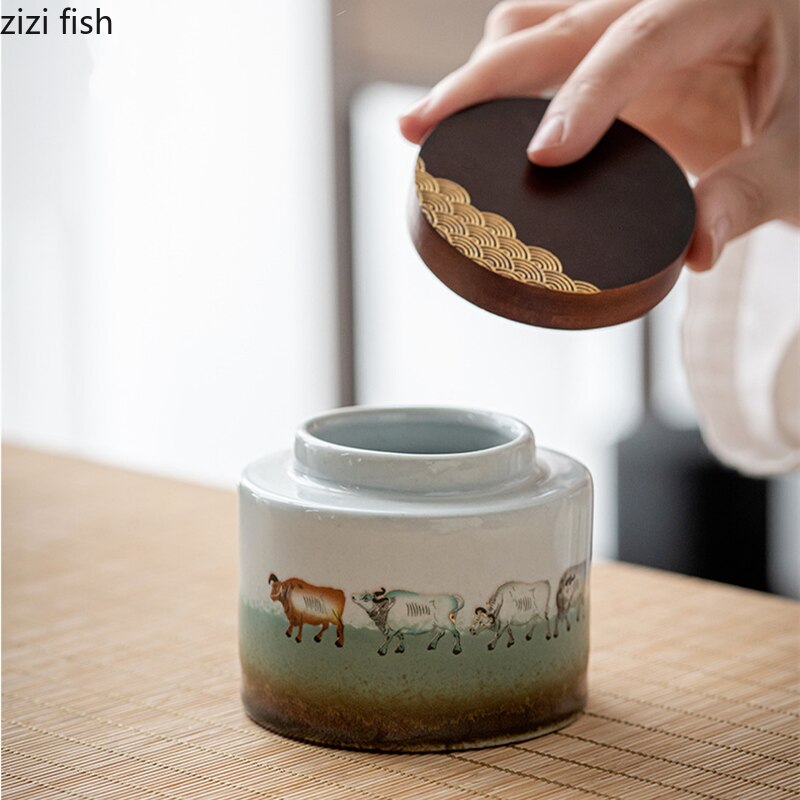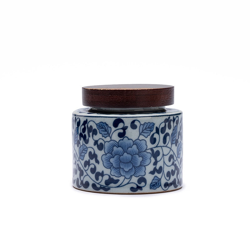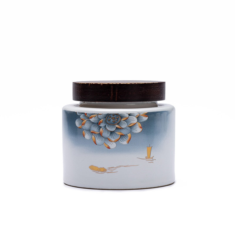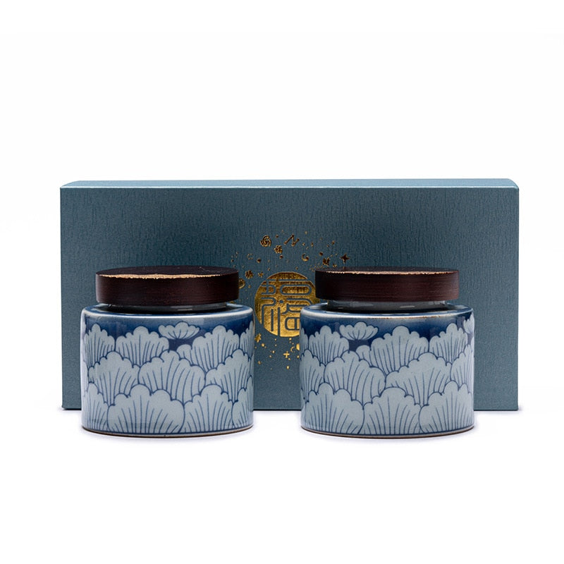 Ceramic Tea Caddy 2 Piece Set Gift Box Wooden Cover Storage Tank Sealed Jar Storage Tank Tea Box Tea Container Candy Jar Tea Can