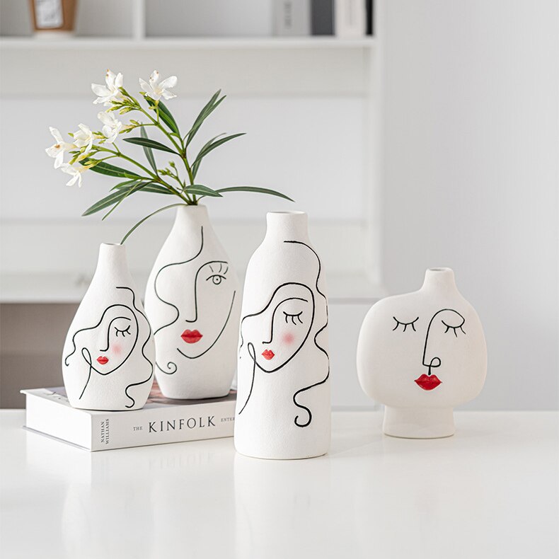 Creative Painting Art Vase Home Decoration Crafts Aesthetic Interior Desktop Ornament Ceramic Vases for Flowers Arrangement Gift