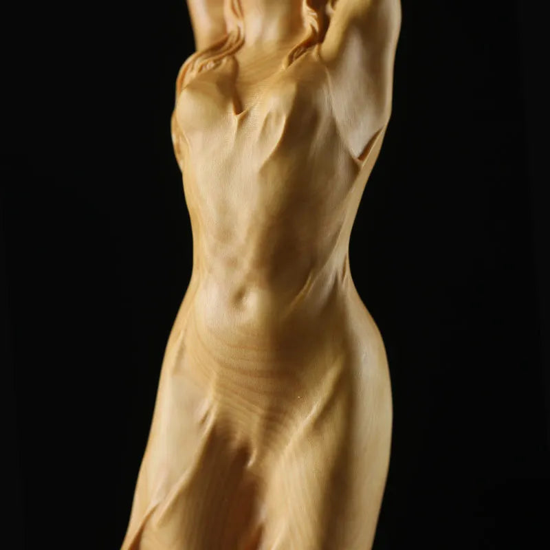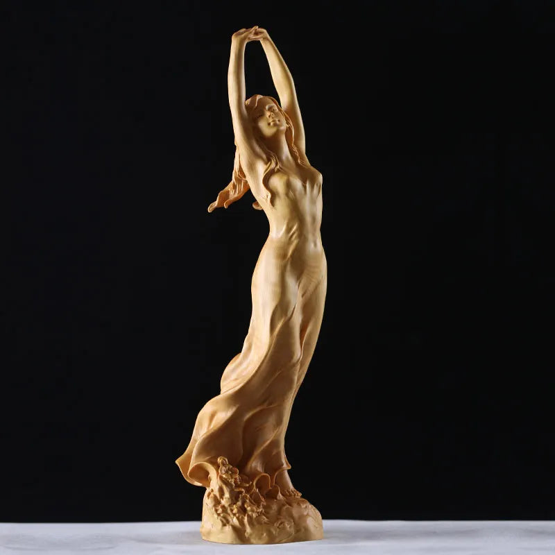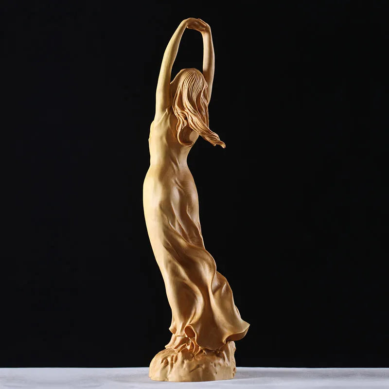 Elevate your home's artistic flair with this exquisite handcrafted wooden sculpture. Adorning a unique hand-up pose, this young lady statue manifests grace and beauty in every curve and detail. Its fairy-like semblance transforms spaces into realms of fantasy and wonder, making it a much-coveted piece for art collectors and a heartwarming birthday gift. Add a touch of handmade sophistication and allure to your craft collection with this unparalleled piece of art that embodies femininity and celestial charm in every inch.