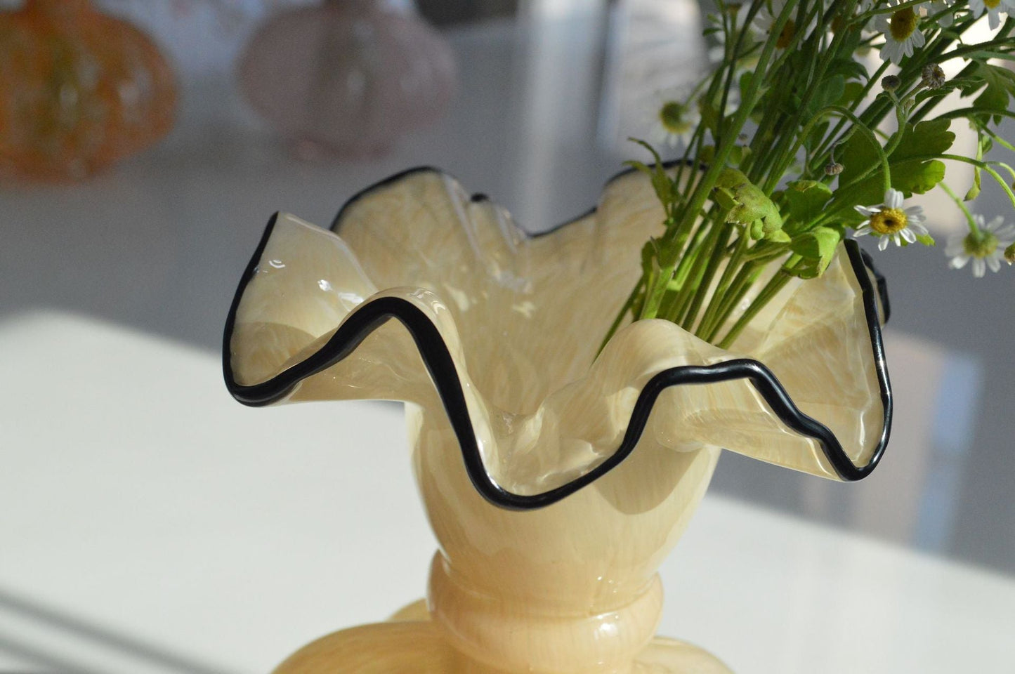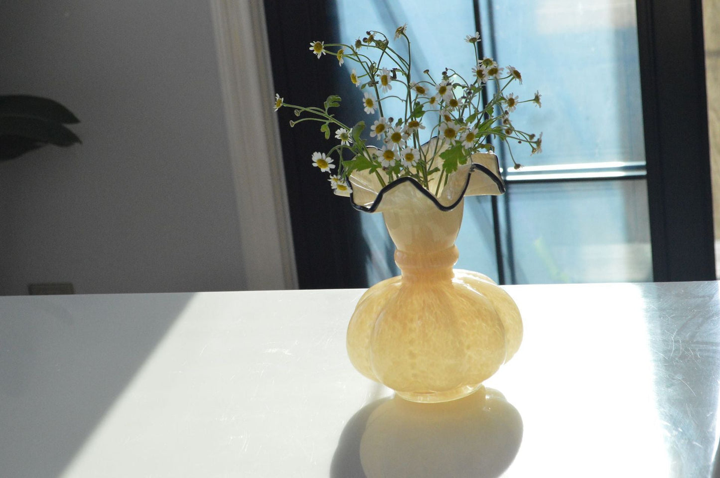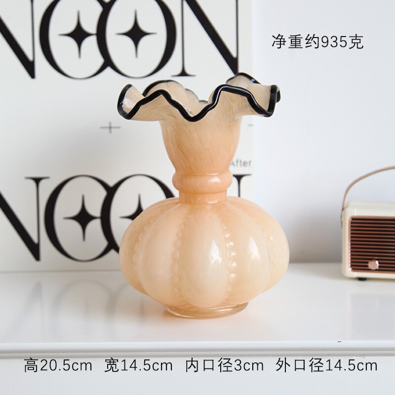 French Milk Jade Yellow Pumpkin Beads Vase Handmade Glass Home Decoration Living Room Decorative Flower Set Soft Decoration