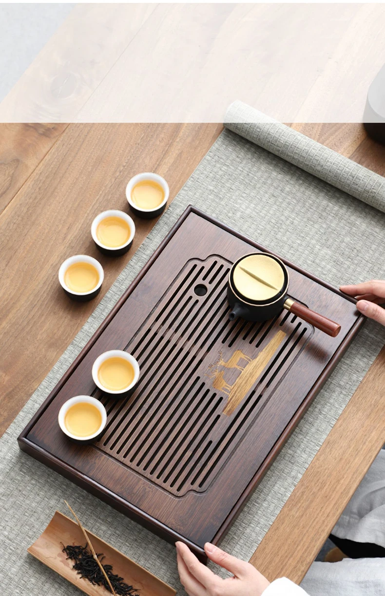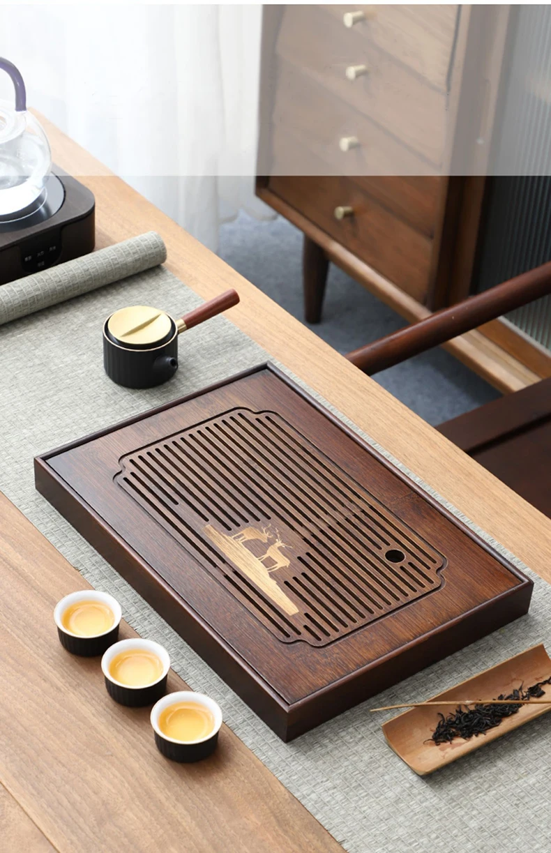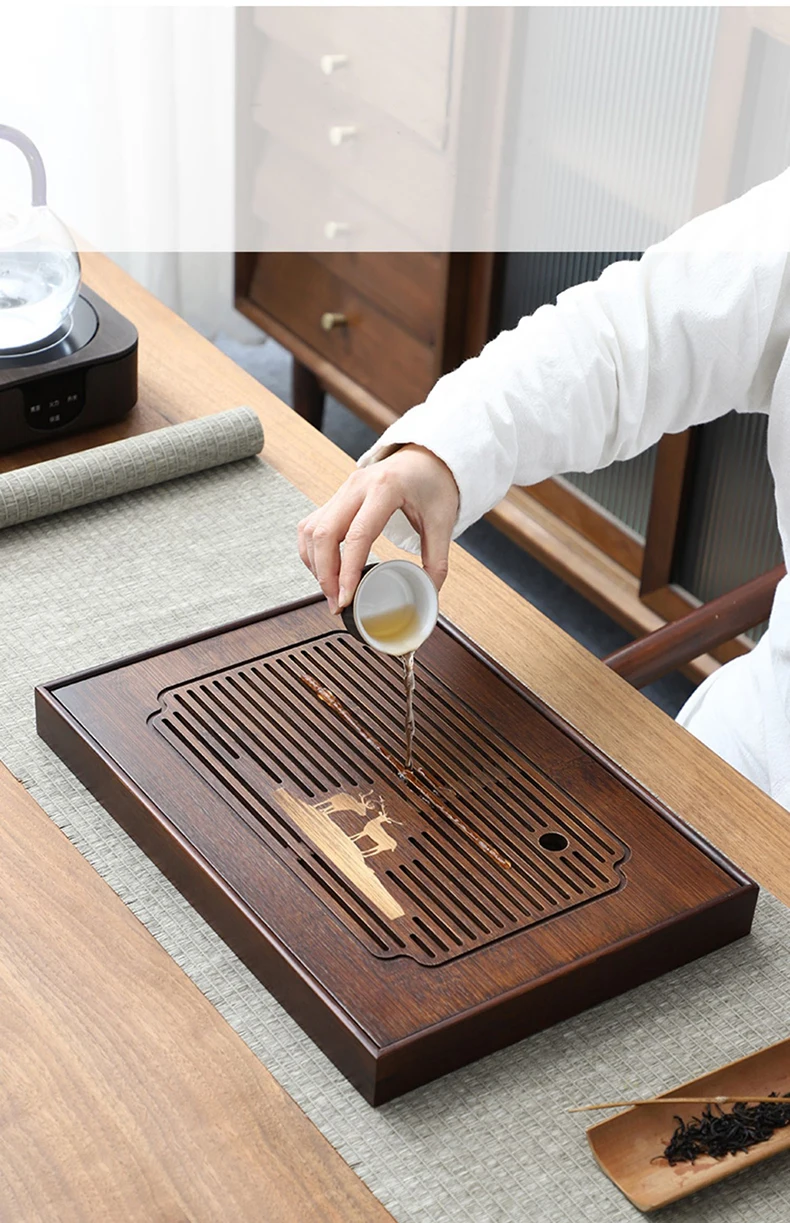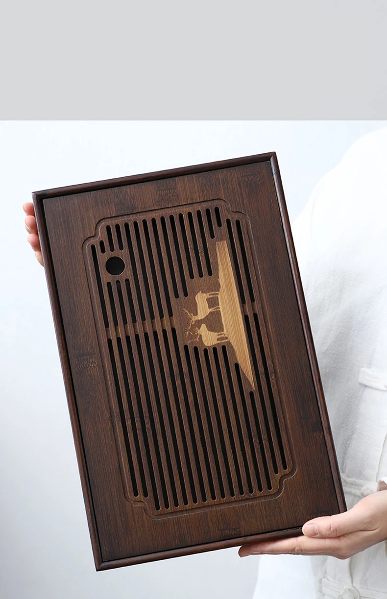 GIANXI Chinese Natural Bamboo Tea Tray Water Storage Kung Fu Tea Set Household Rectangular Tea Board Chinese Tea Storage Tray