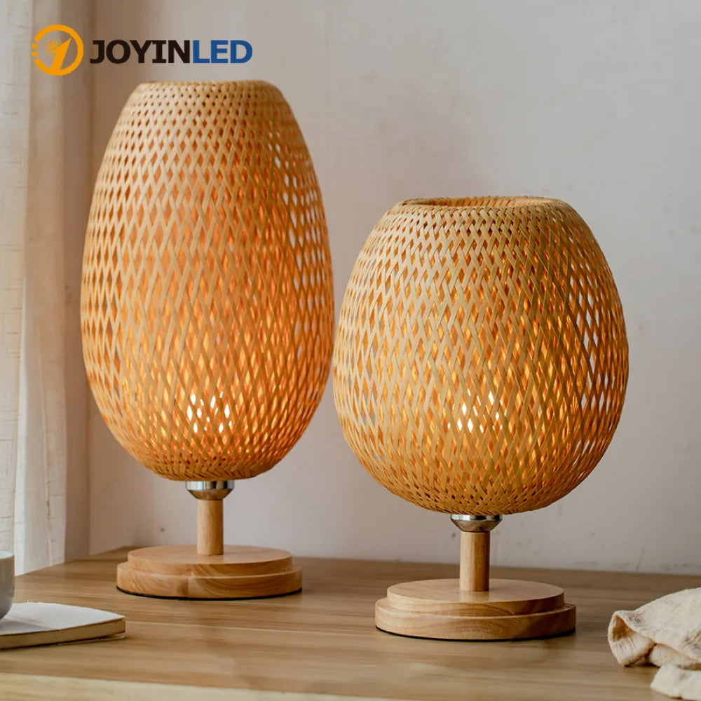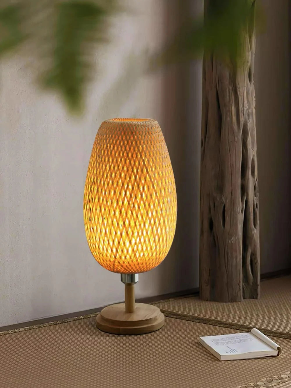Japanese Table Lamp Bedside Lamp Bedroom Ins Wind Warm Nordic Bamboo Woven Light Warm Night Light Retro Desk Lamp