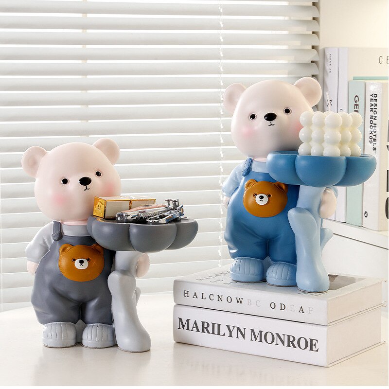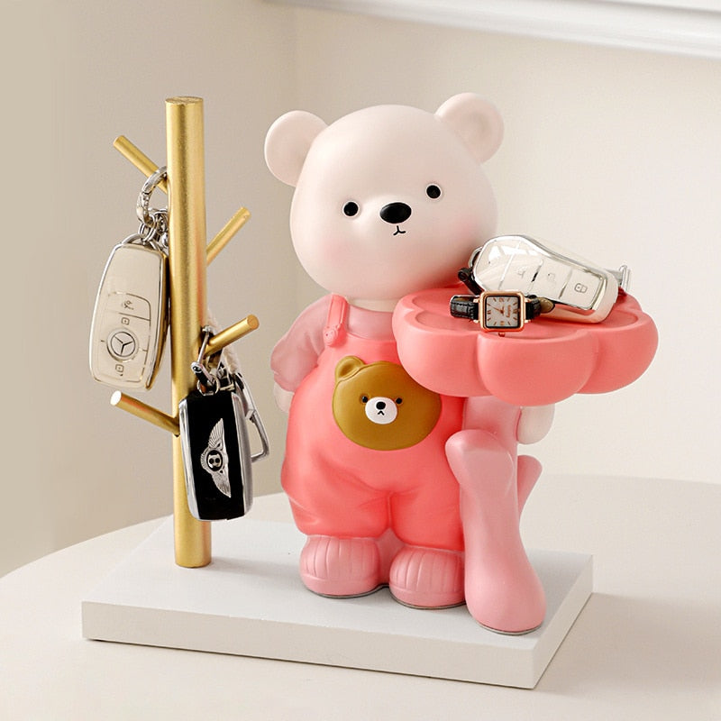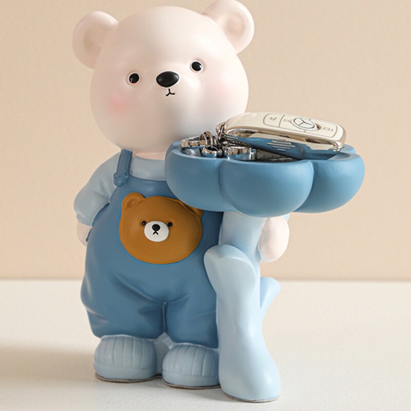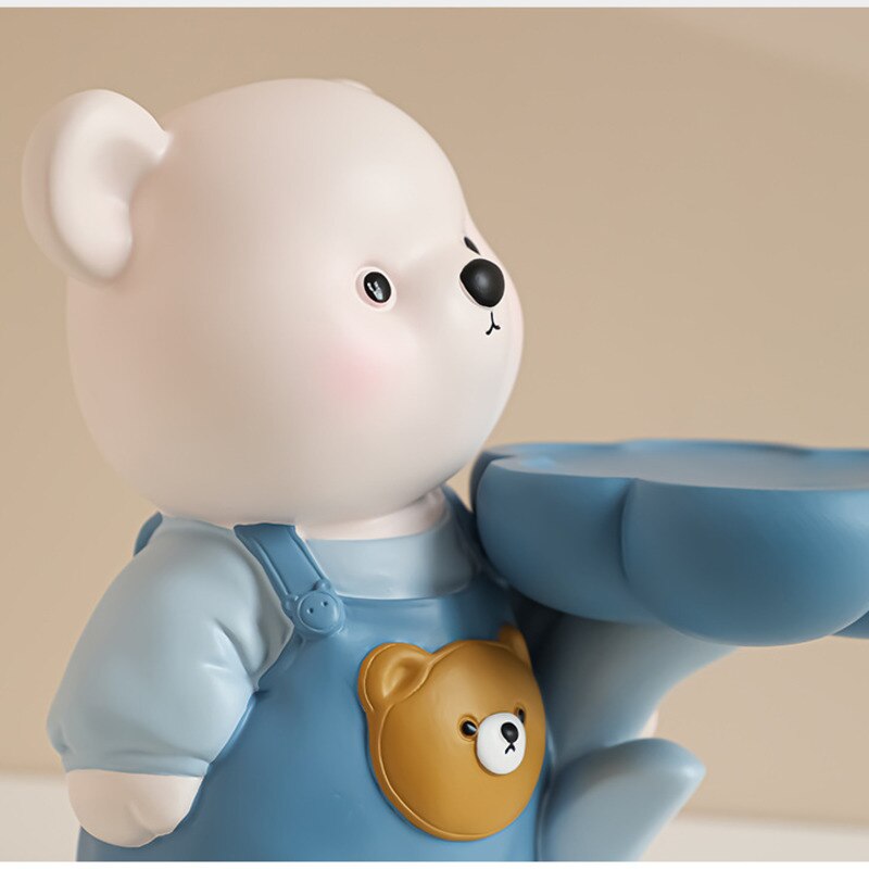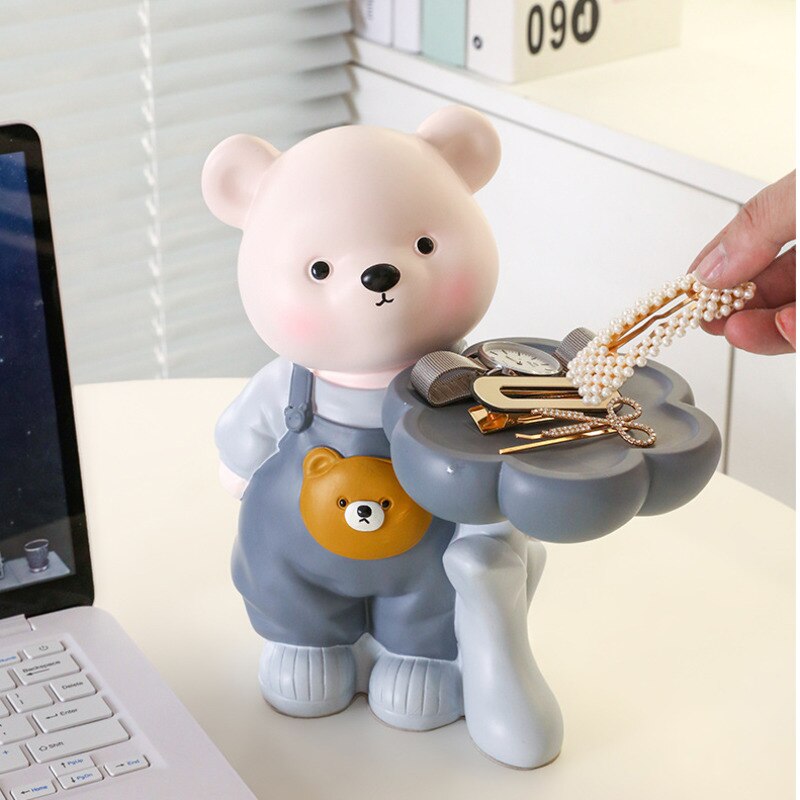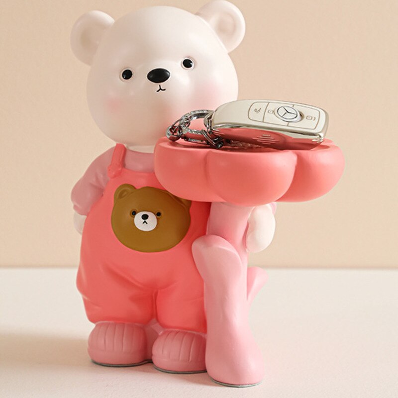 Kawaii Bear Flower Petal Tray Statue Animal Storage Tray Sculpture Ornaments Porch Keys Storage Shelf Desktop Office Home Decor