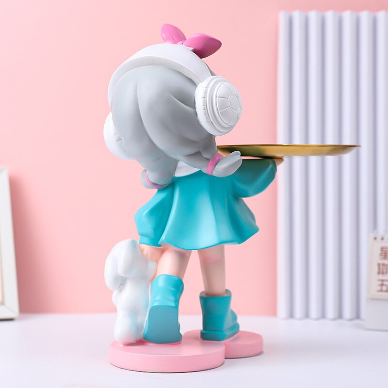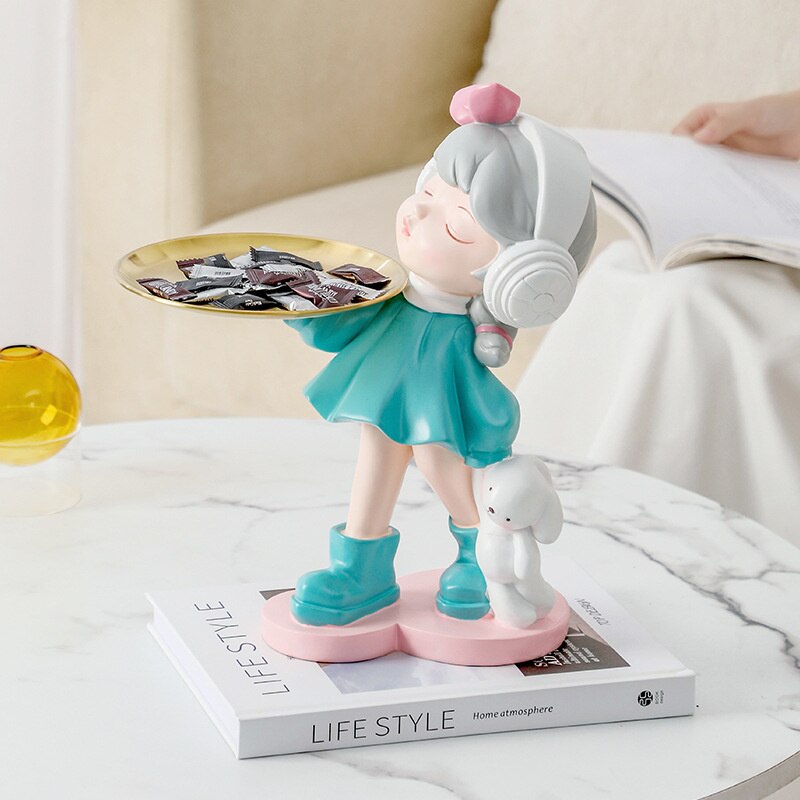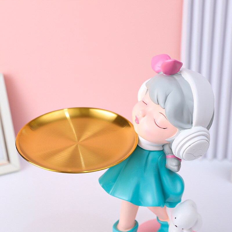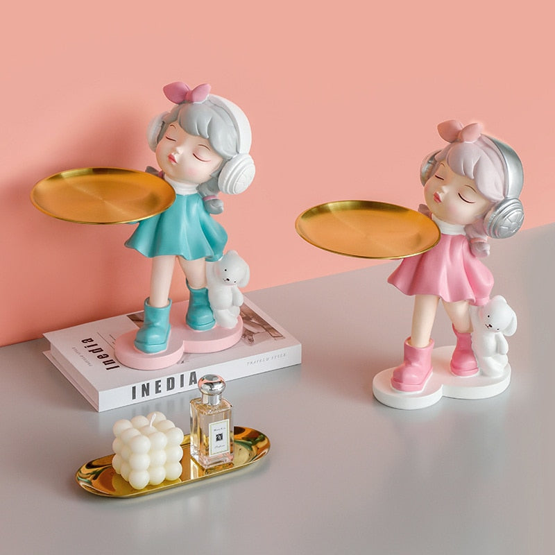 Nordic Girls Storage Statue Keys Snacks Cosmetics Storage Tray Music Dress Princess Sculpture Ornaments Craft Desktop Home Decor