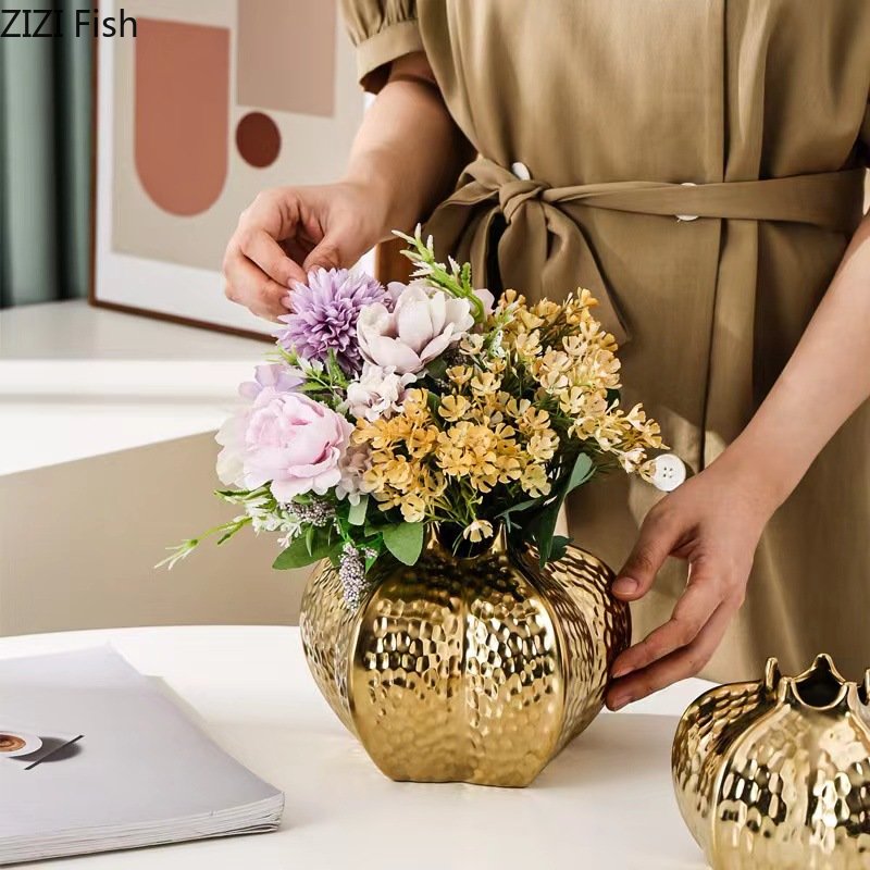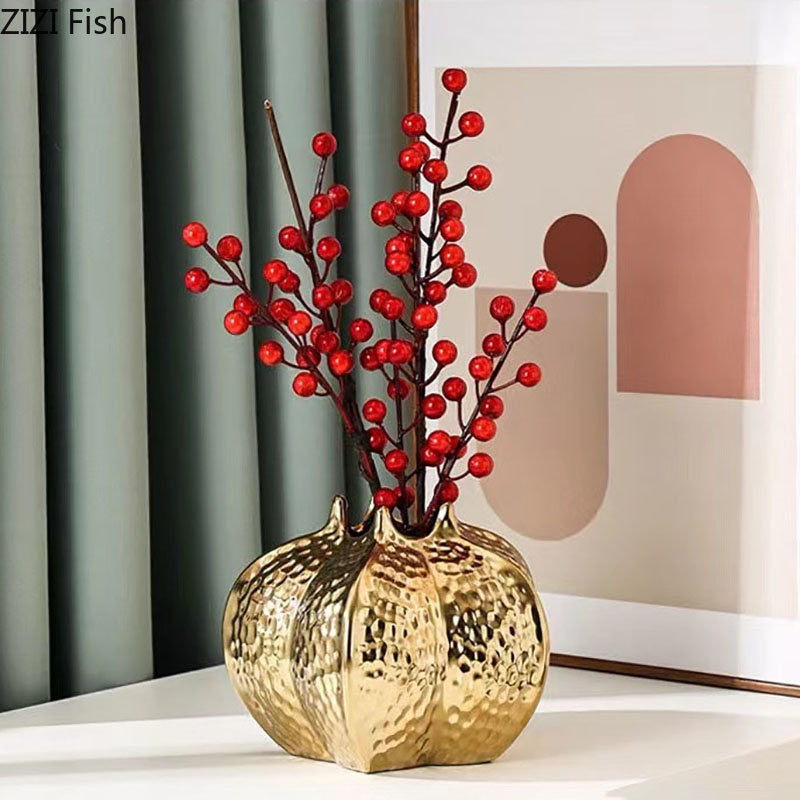Product name: Pomegranate Shape Gold-plated Ceramic Vase