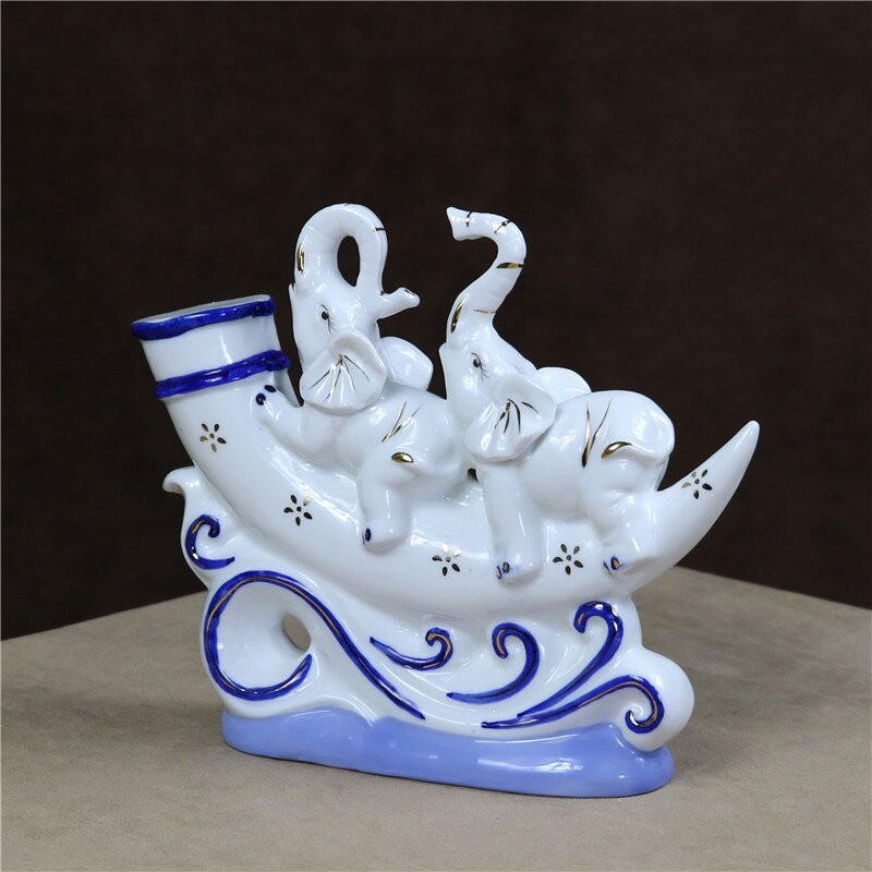 1. Description: Porcelain Voyage Elephant Sculpture Ceramic Adventure Couple Elephant Statue Room Decor Ivory Gift Craft Accessories Furnishing.