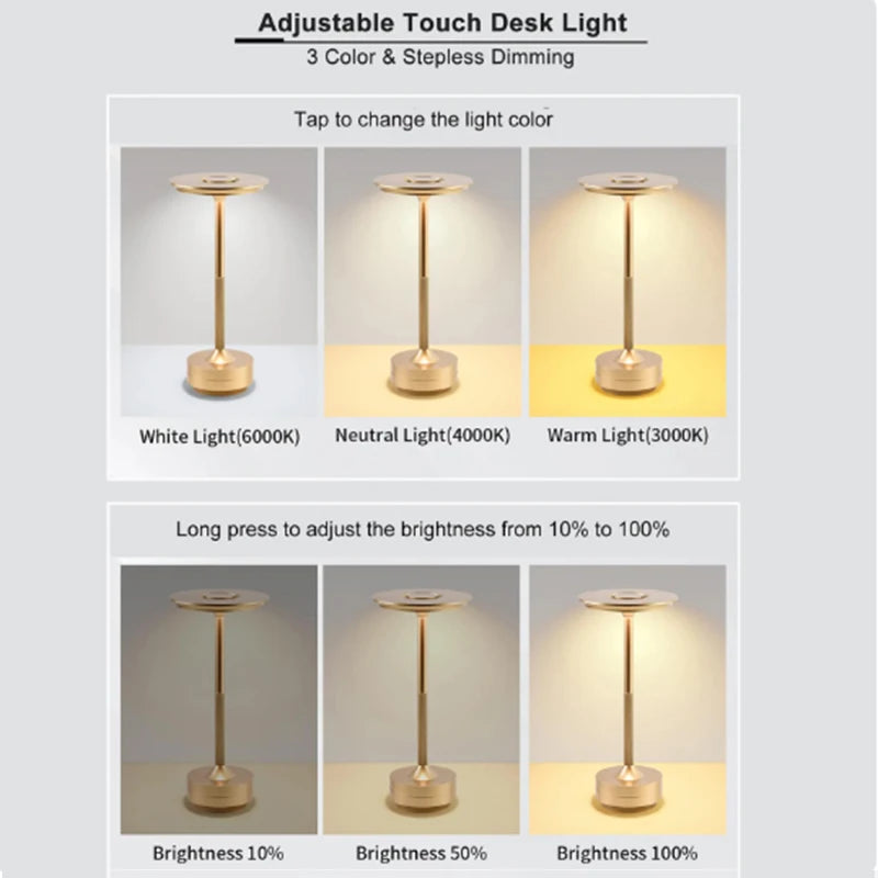 Rechargeable Table Lamp LED Touch Sensor Desktop Night Light Wireless Reading Lamp for Restaurant Hotel Bar Bedroom Decor Light