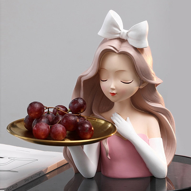 Resin Girl Tray Figurines for Interior Nordic INS Figure Decor Statue Home Living Room Desktop Storage Decoration