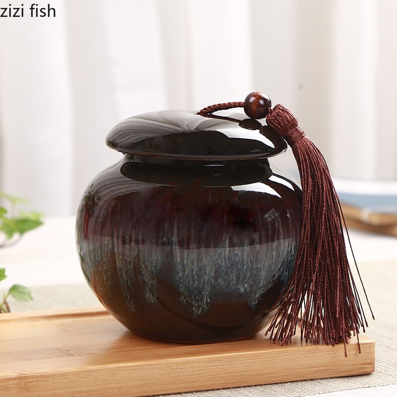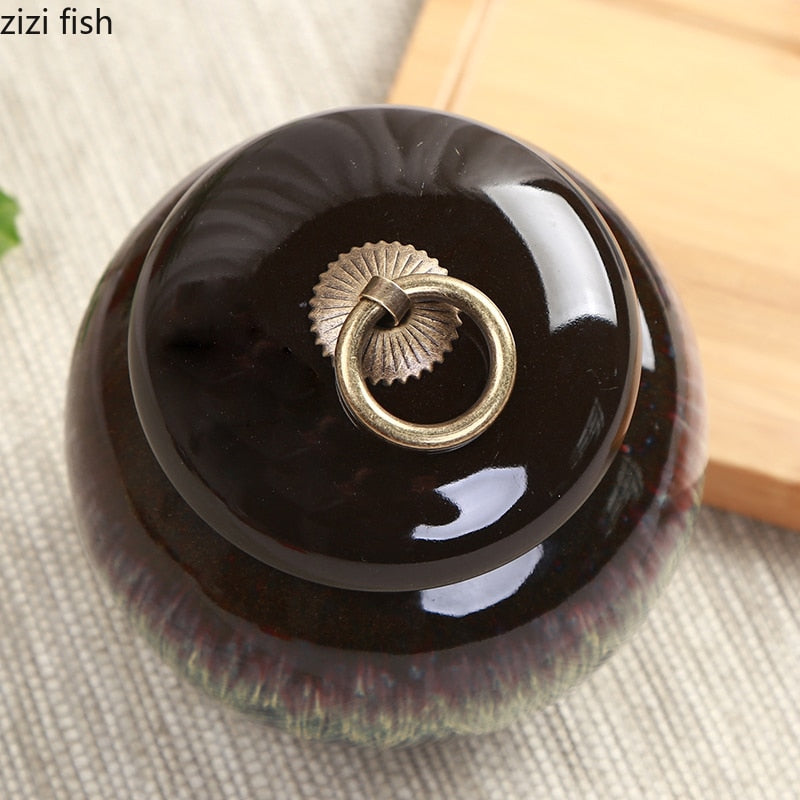 Small Tea Can Ceramic Storage Jar Moisture Proof Sealed Jar Tea Caddy Home Food Organizer Tea Container Candy Jars Storage Tank