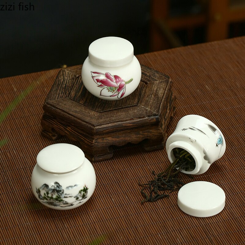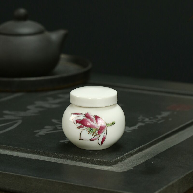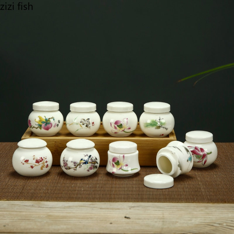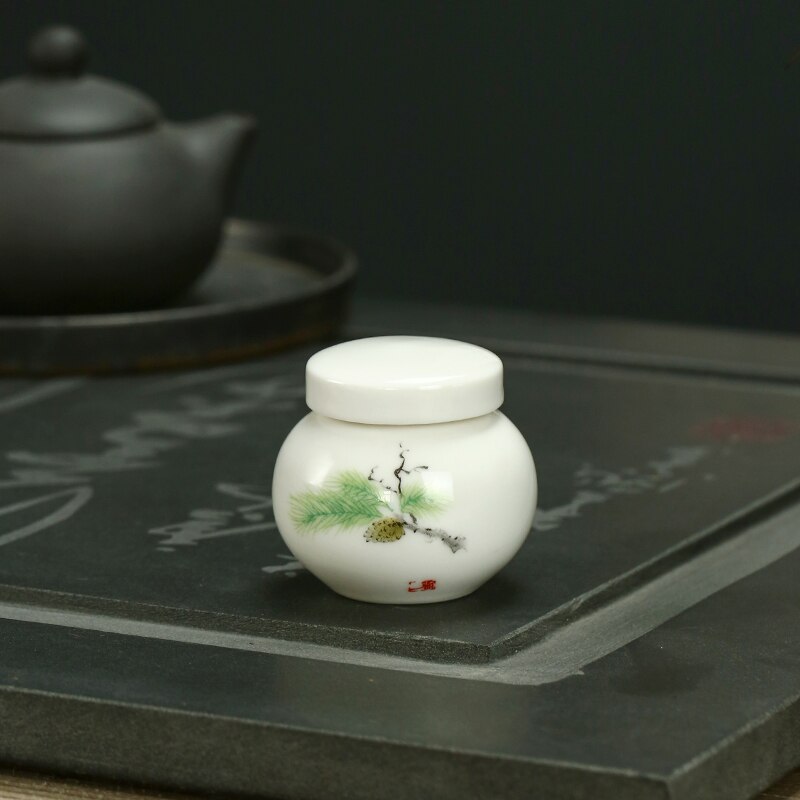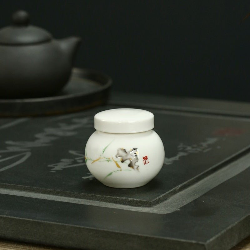 White Ceramic Jar Small Tea Caddy Storage Tank Moisture-proof Sealed Jar Tea Tins Tea Container Storage Box Candy Jars Tea Can