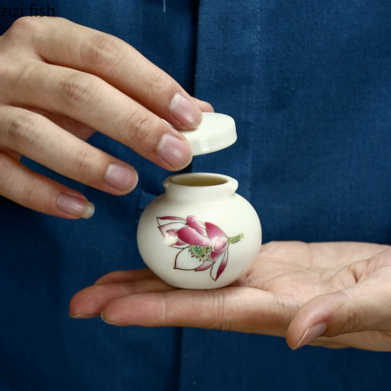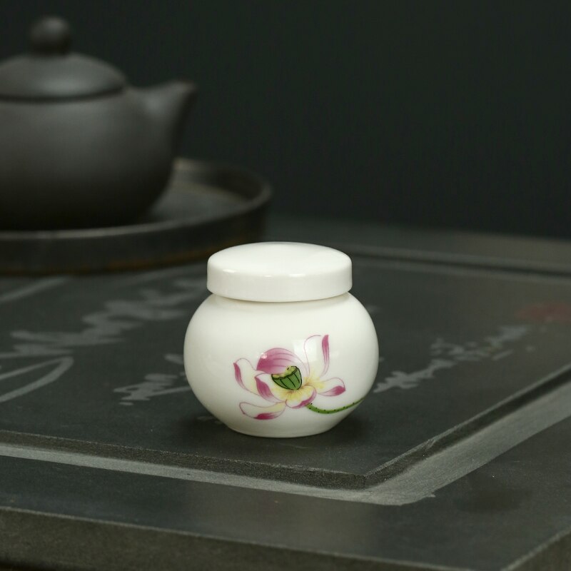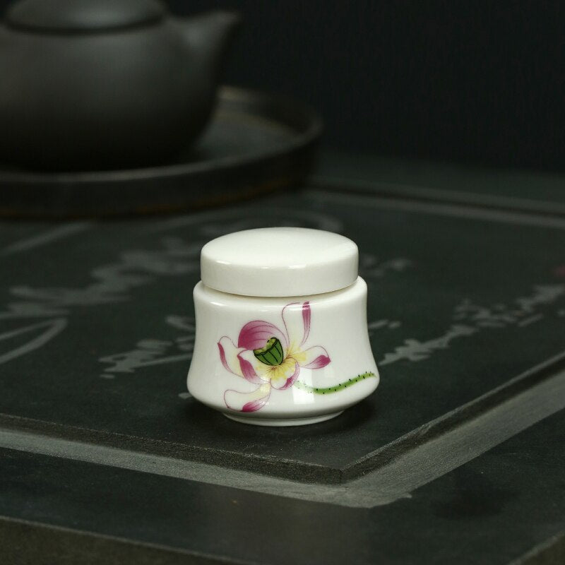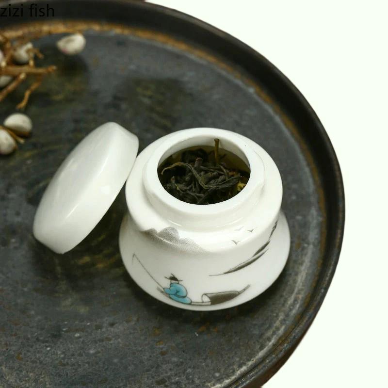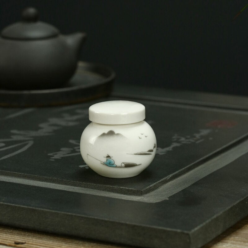 White Ceramic Jar Small Tea Caddy Storage Tank Moisture-proof Sealed Jar Tea Tins Tea Container Storage Box Candy Jars Tea Can