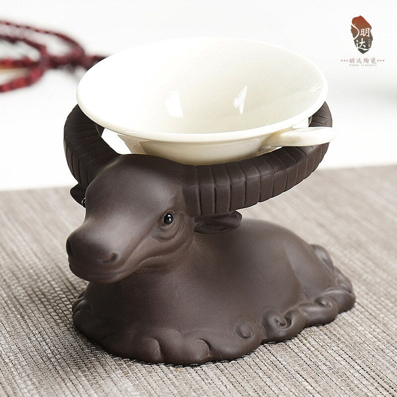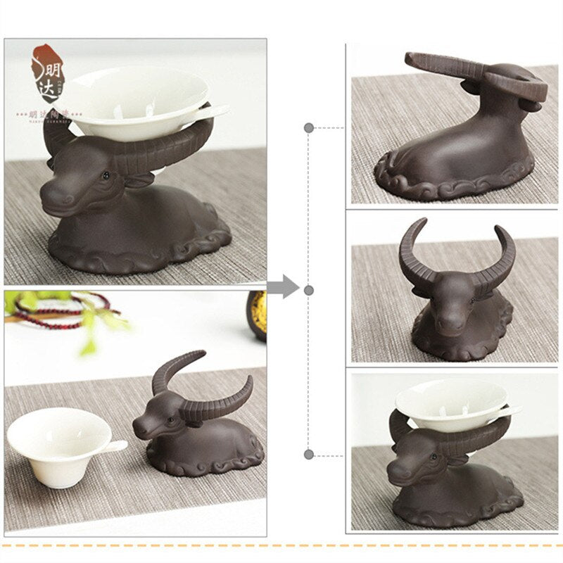 1piece Purple Clay Mascot Tea Pet Accessories Handicraft Cattle Home Decoration Business Gift Furnishing