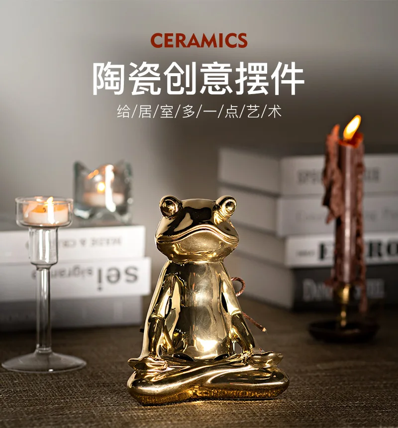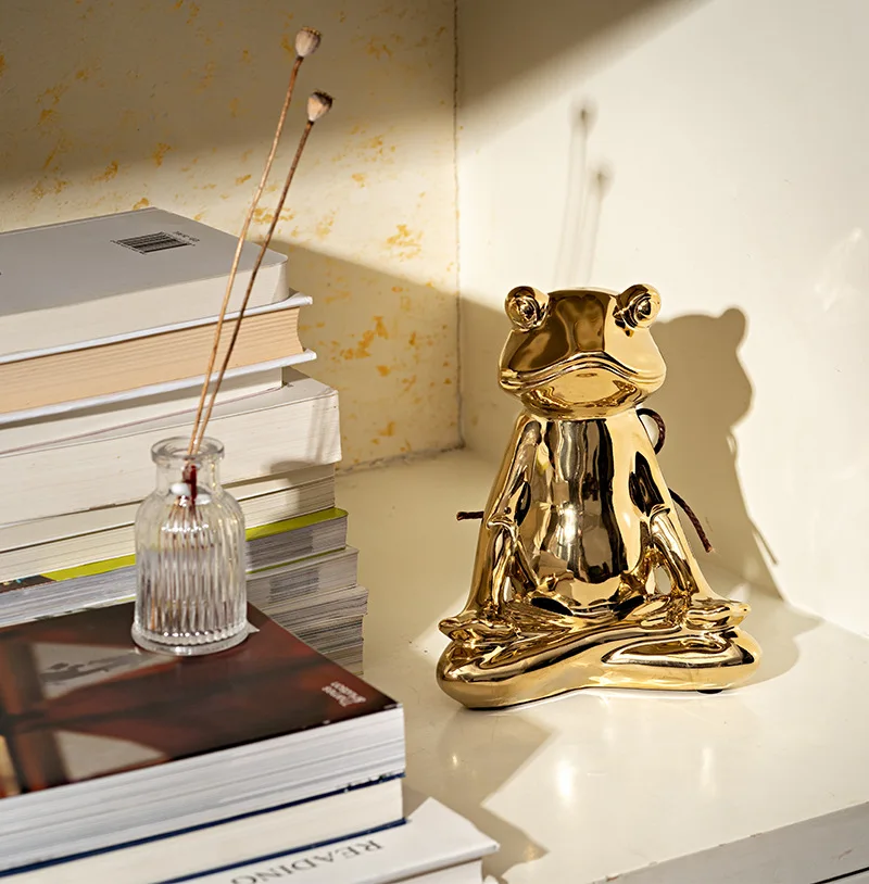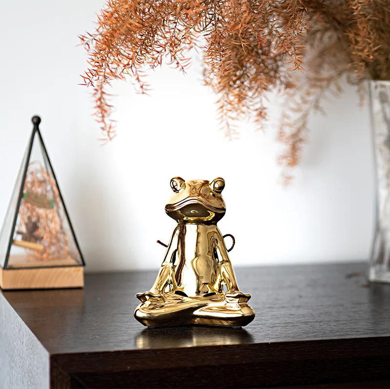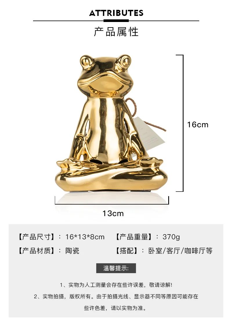 16X13X8cm Golden Yoga Frog Porcelain Cartoon Decoration Decorations Living Room Table Decoration Aromatherapy Decorations