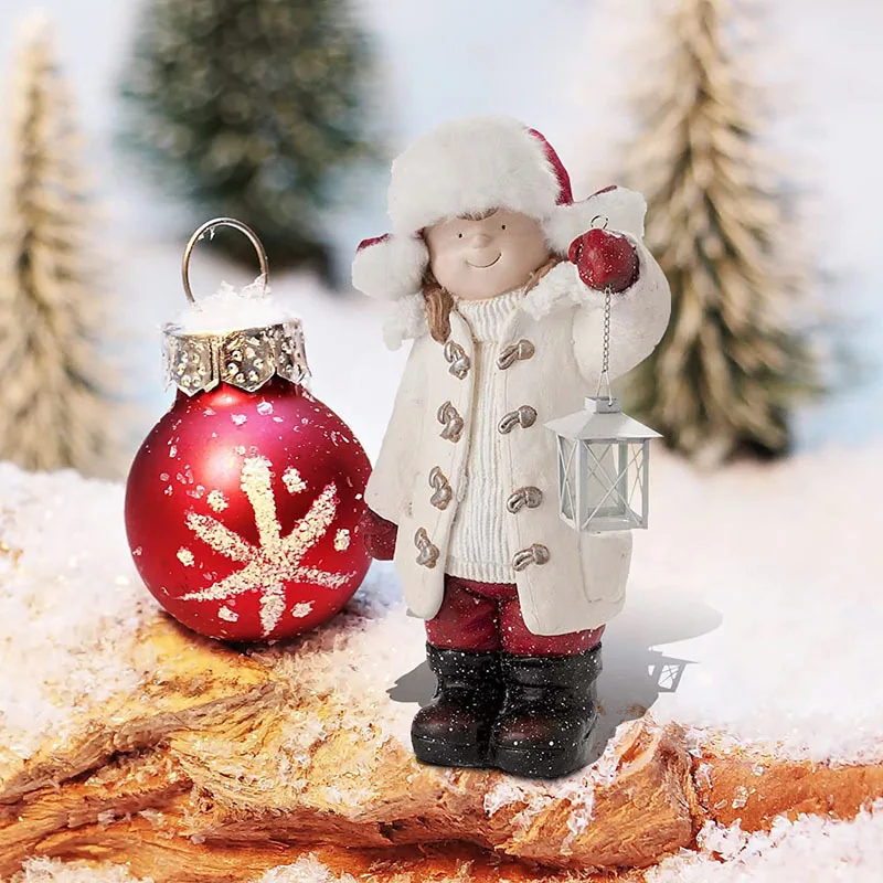 Наши дружелюбные дети приветствуют вас всех гостей на дороге. Веселый мальчик носит красную парку, красные перчатки и его снежные ботинки. Его молодая леди также носили белые украшенные красные шляпы и белую зимнюю одежду, играющую на снегу. Они оба, очевидно, оставались на улице некоторое время, потому что они были полны снежинок. Эта пара рождественских детских статуэток идеально подходит для приветствия гостей на крыльце и выглядеть очаровательно от камина или в любом месте с праздничными украшениями.