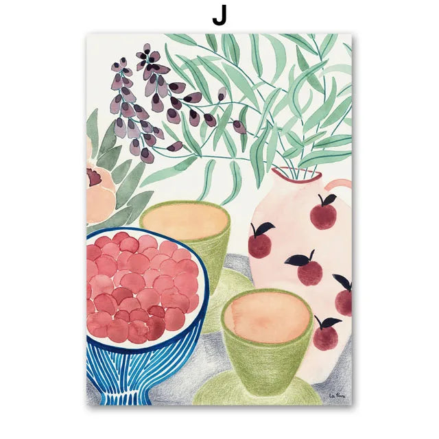 Abstract Girl Hand Fruit Flower Leaf Vase Wall Art Canvas Painting Nordic Posters And Prints Wall Pictures For Living Room Decor